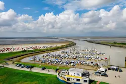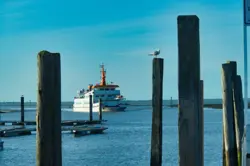 Vom Hafen in Bensersiel fährt die Fähre auf die ostfriesische Insel Langeoog.