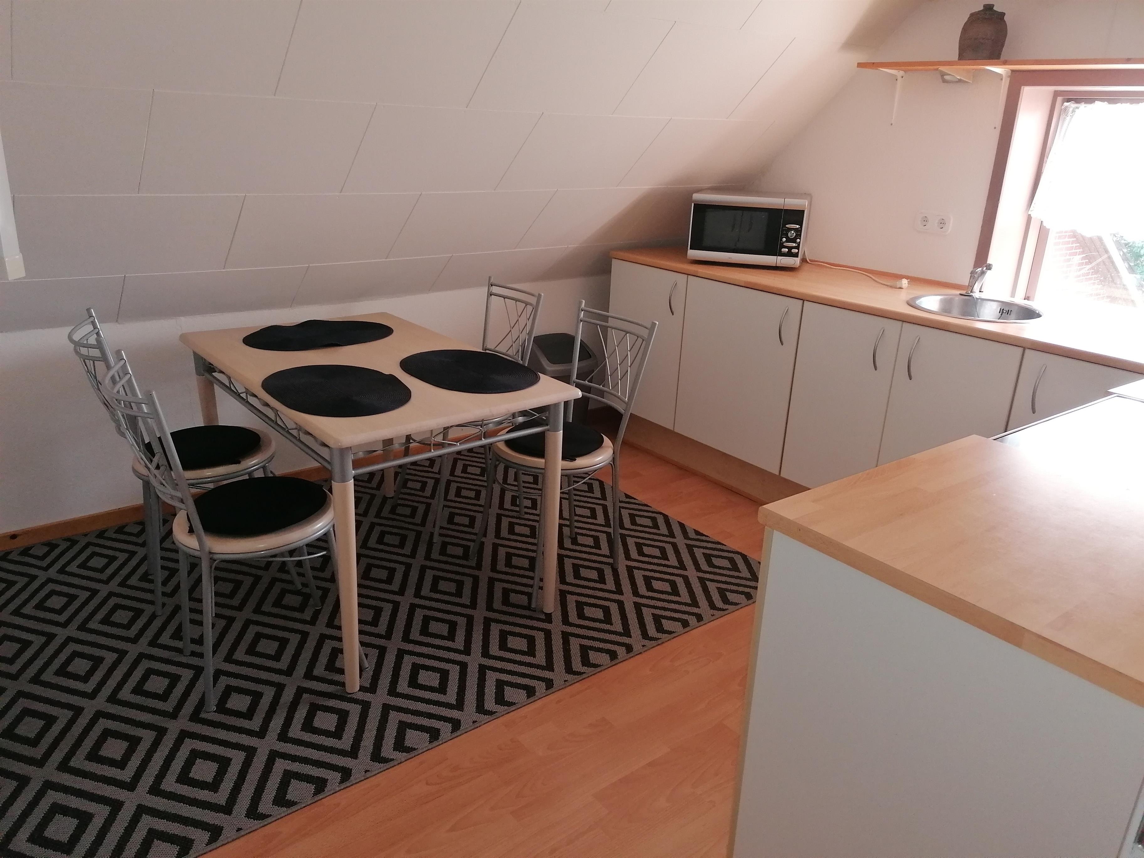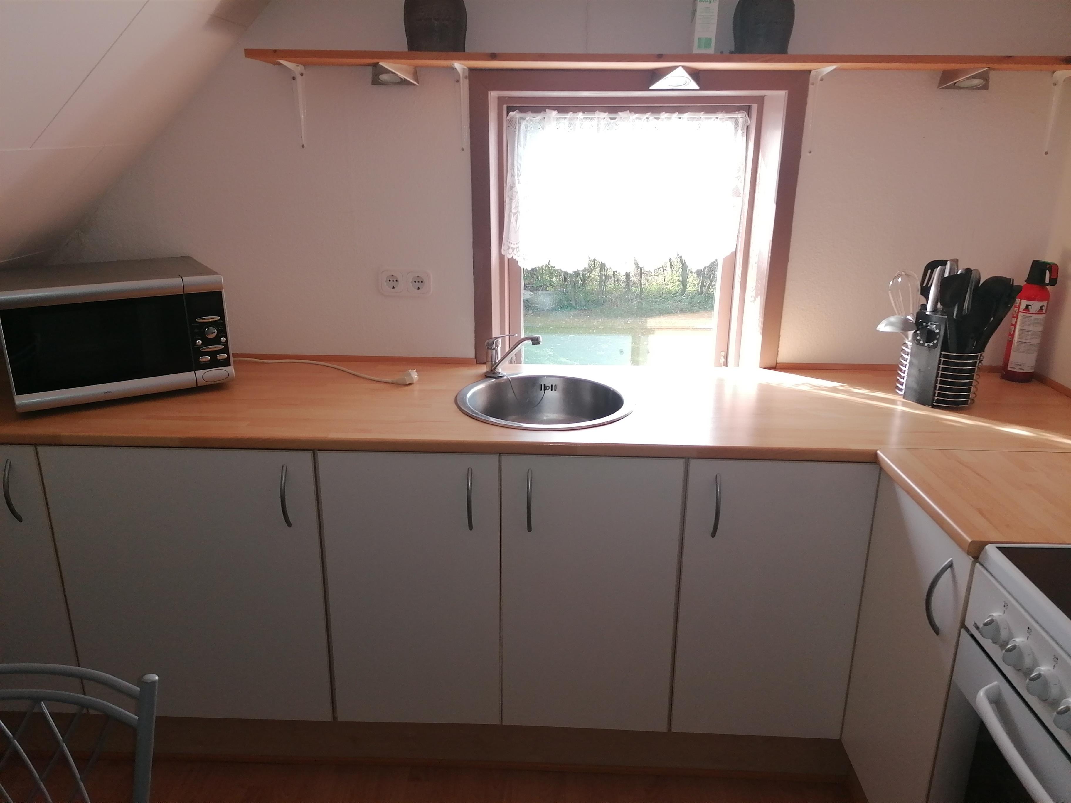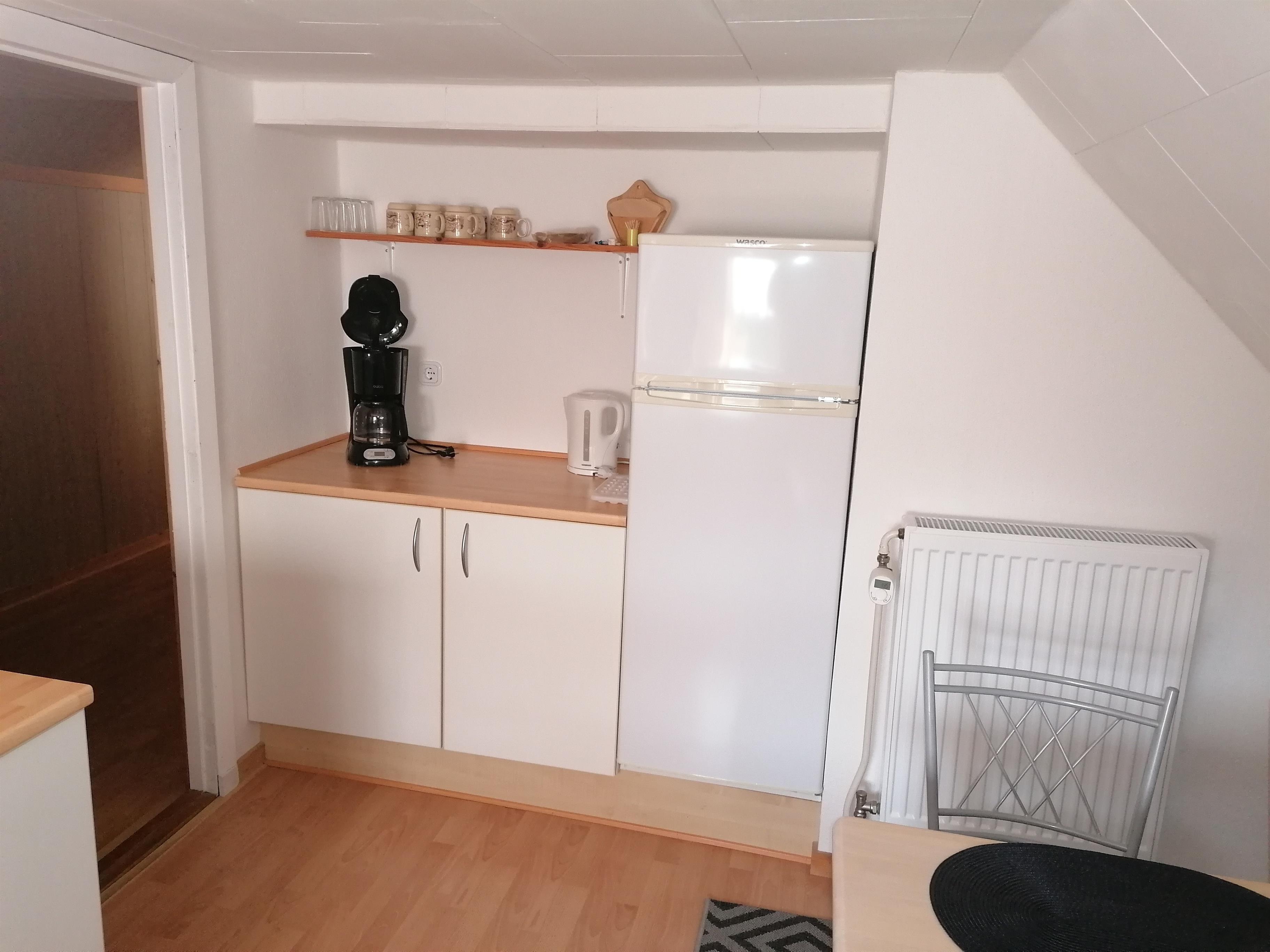 Die voll ausgestattete Küche bietet Ihnen neben einem 4*-Kühlschrank mit Gefrierfach einen Elektroherd mit Ceranfeld, eine Mikrowelle, eine Kaffeemaschine, einen Wasserkocher und einen Toaster/Brotröster. Ansonsten ist die Küche mit allen benötigten Kochutensilien ausgestattet. Des Weiteren ist ein Essplatz vorhanden. Geschirrtücher, Schwamm und Spülmittel samt Küchenrolle stellen wir als Starterset bereit. Gewürze zum Kochen sind ebenfalls vorhanden.