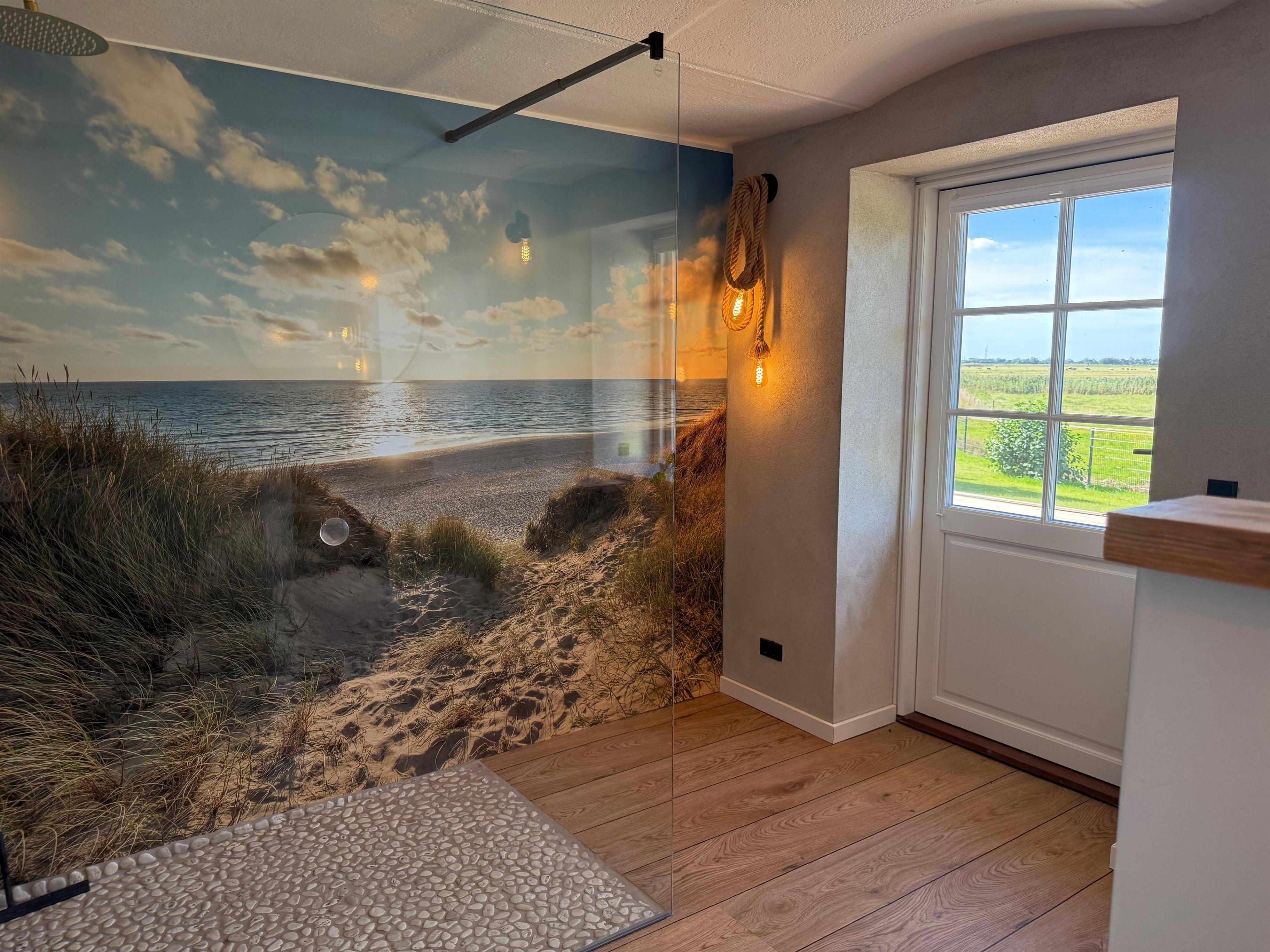 Vom Haus aus Blick man über Felder und kann Schafe und Küche beobachten. Die Gegend lädt zum Verweilen, langläufige Spaziergänge oder Fahrradtouren ein.