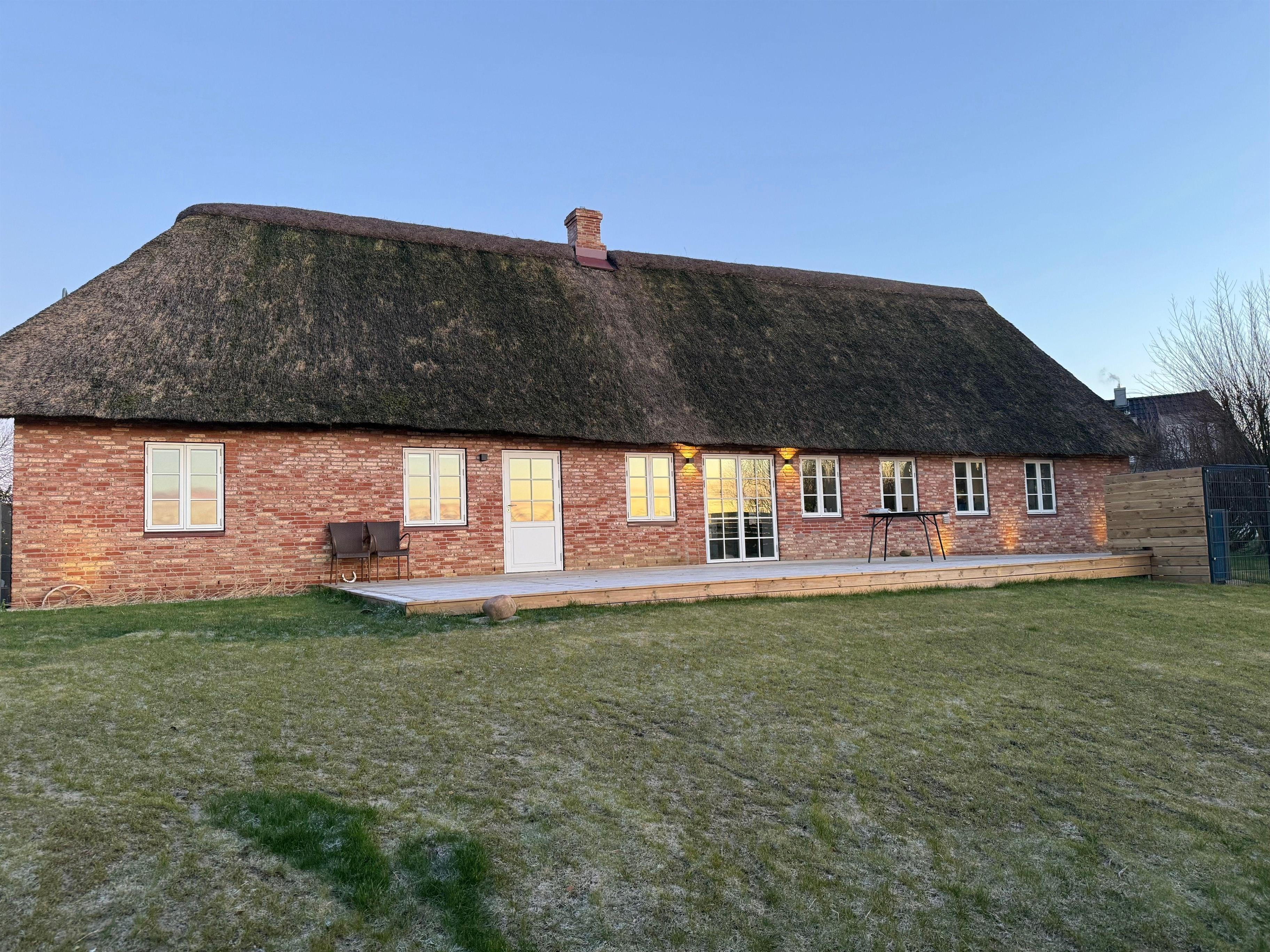 Neu saniertes Reetdachhaus an der deutsch-dänischen Grenze mit Kamin, großer Terrasse und ruhiger Lage für bis zu 6 Personen.