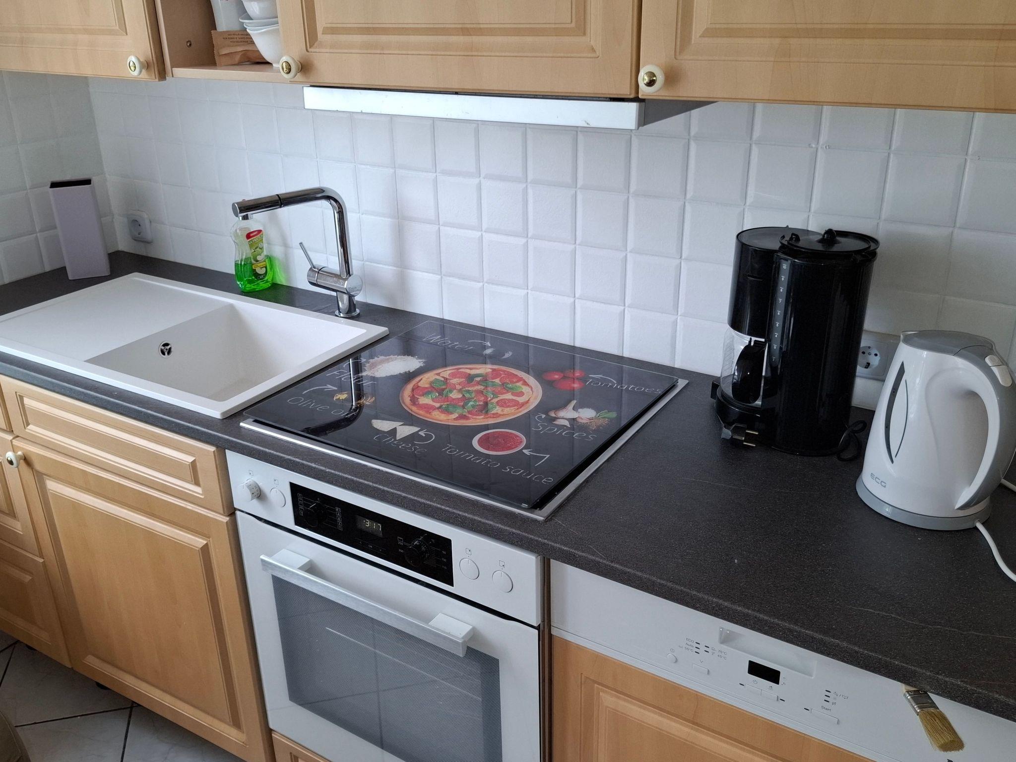 Die Wohnung hat sowohl eine Fußbodenerwärmung als auch Heizkörper in jedem Raum und eine helle voll eingerichtete moderne Küche mit Mikrowelle, Geschirrspüler, Ceranfeld, Umluftherd und einer großen Sitzgruppe und Kindersitz warten auf Ihre Familie.