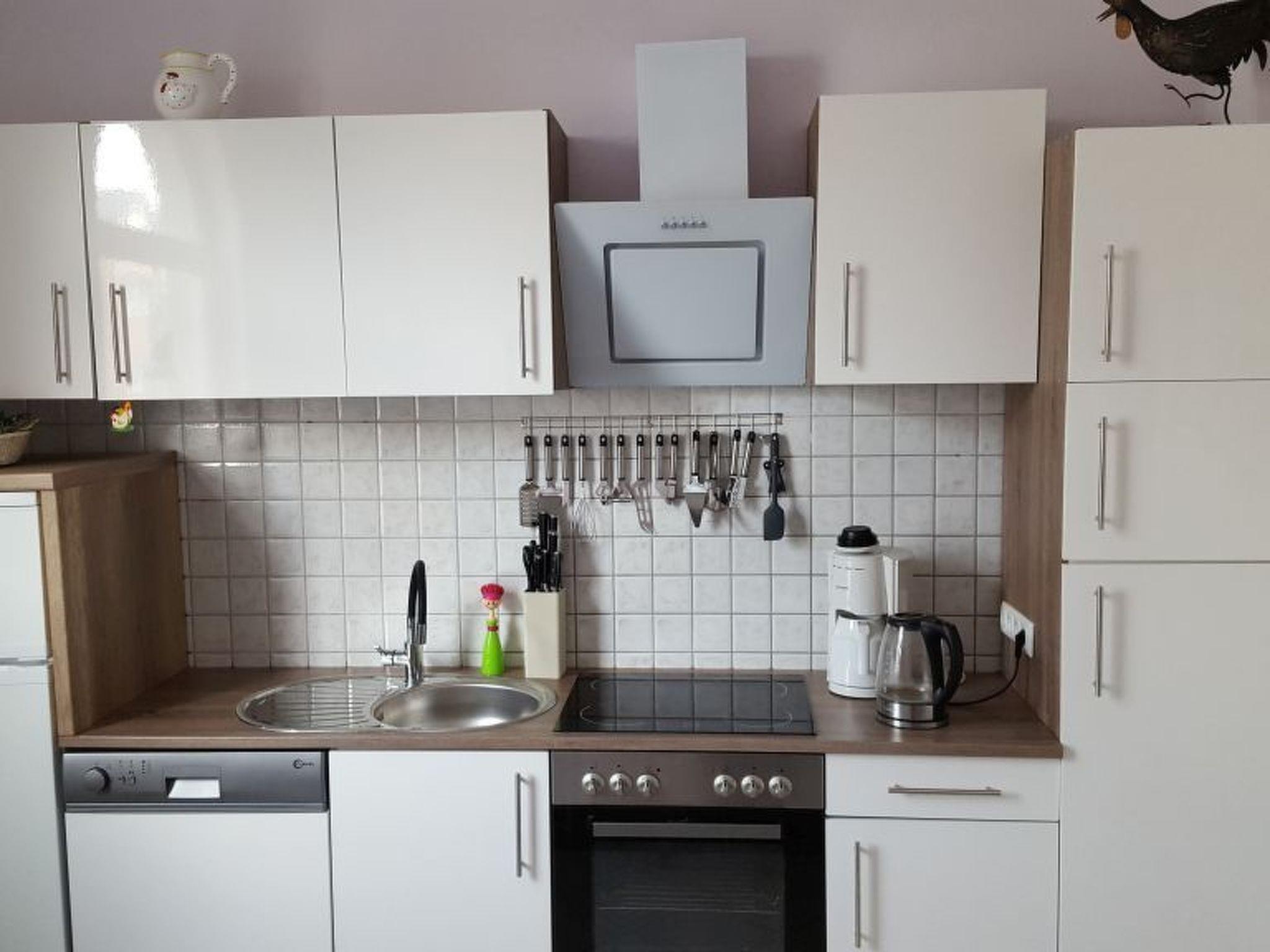 Die Wohnung hat sowohl eine Fußbodenerwärmung als auch Heizkörper in jedem Raum und eine helle voll eingerichtete moderne Küche mit Mikrowelle, Geschirrspüler, Ceranfeld, Umluftherd und einer großen Sitzgruppe, Kindersitz und zwei Kindergedecke warten auf Ihre Familie. Auch hier befindet sich ein 1,40 m breites Bett.
