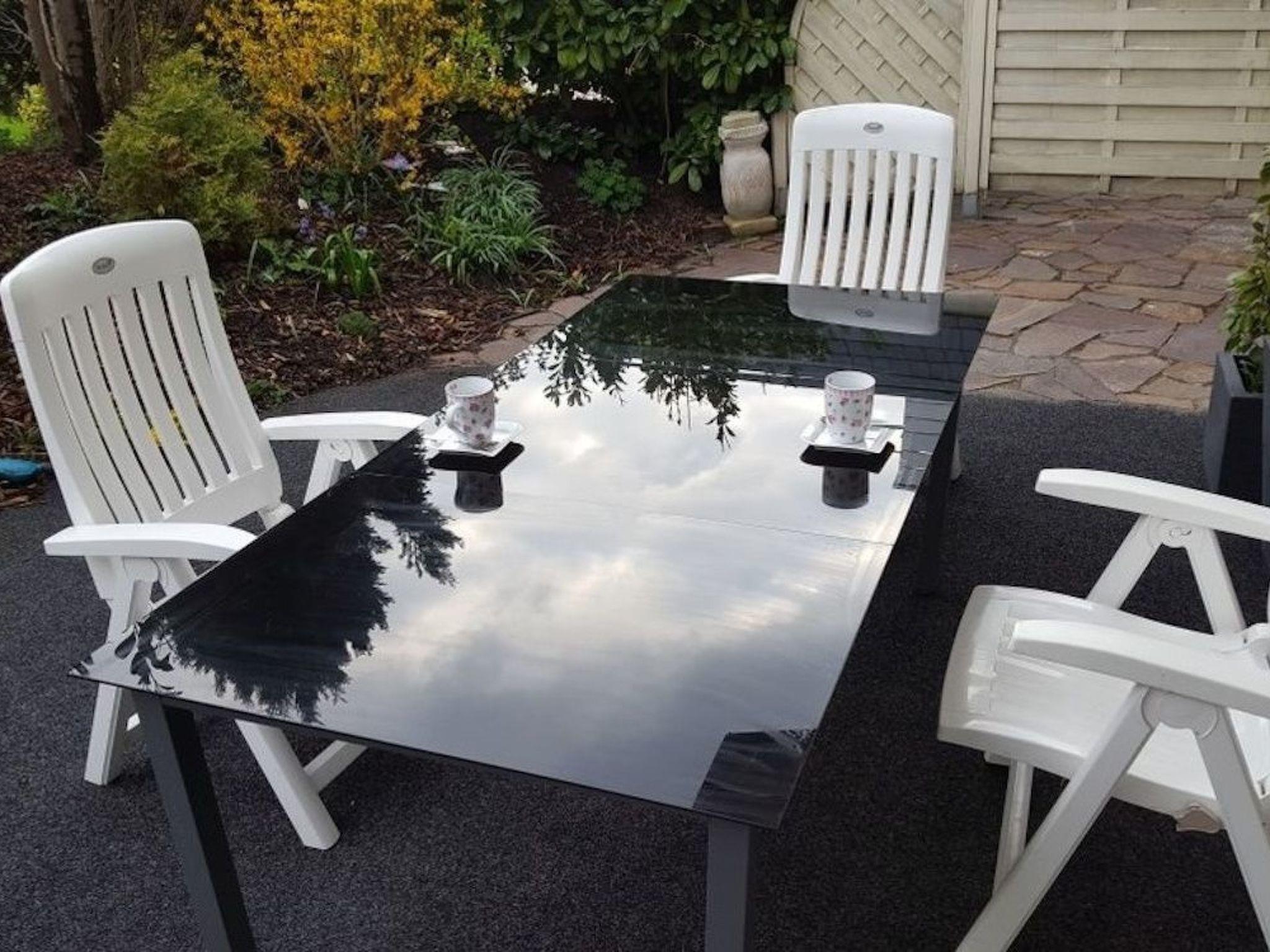 Das Wohn/Esszimmer, mit einem großen 75 Zoll Fernseher, Magenta TV, Internet und WLAN und Blick in den kaum einsehbaren sonnigen und geschützten Garten, lädt nach Rückkehr von Ihren Tagestouren zum Entspannen, Grillen und Entspannen ein.
