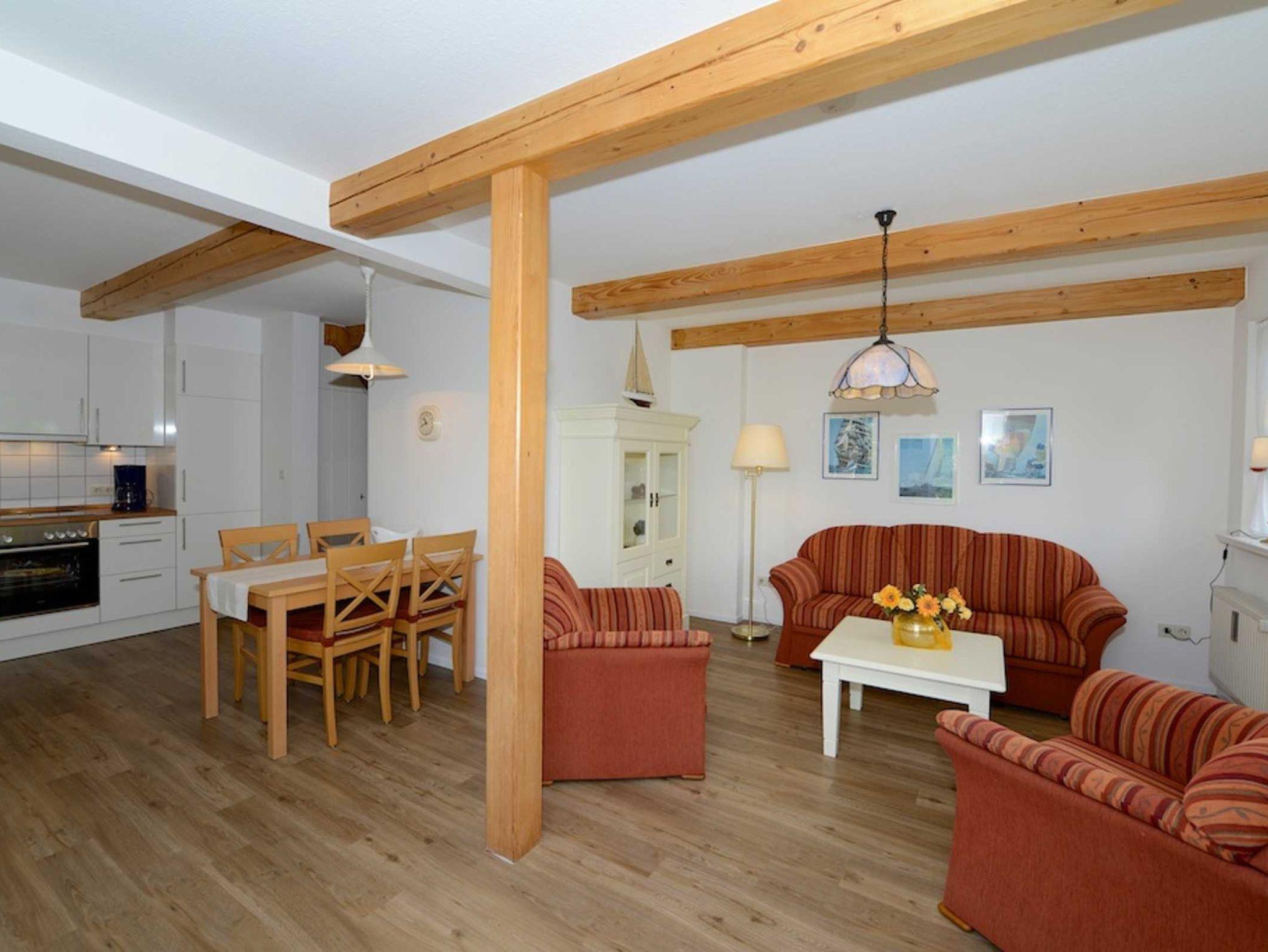 Diese exklusive Maisonettewohnung ist ca. 60 qm groß und erstreckt sich über zwei Ebenen. Im Erdgeschoss verfügen Sie über ein Wohnzimmer, offene Einbauküche mit Essecke und Gäste-WC, sowie einen direkten Zugang Süd-West Terrasse mit Gartenmöbeln und Strandkorb von der Sie einen freien Blick über die Föhrer Marsch genießen können.