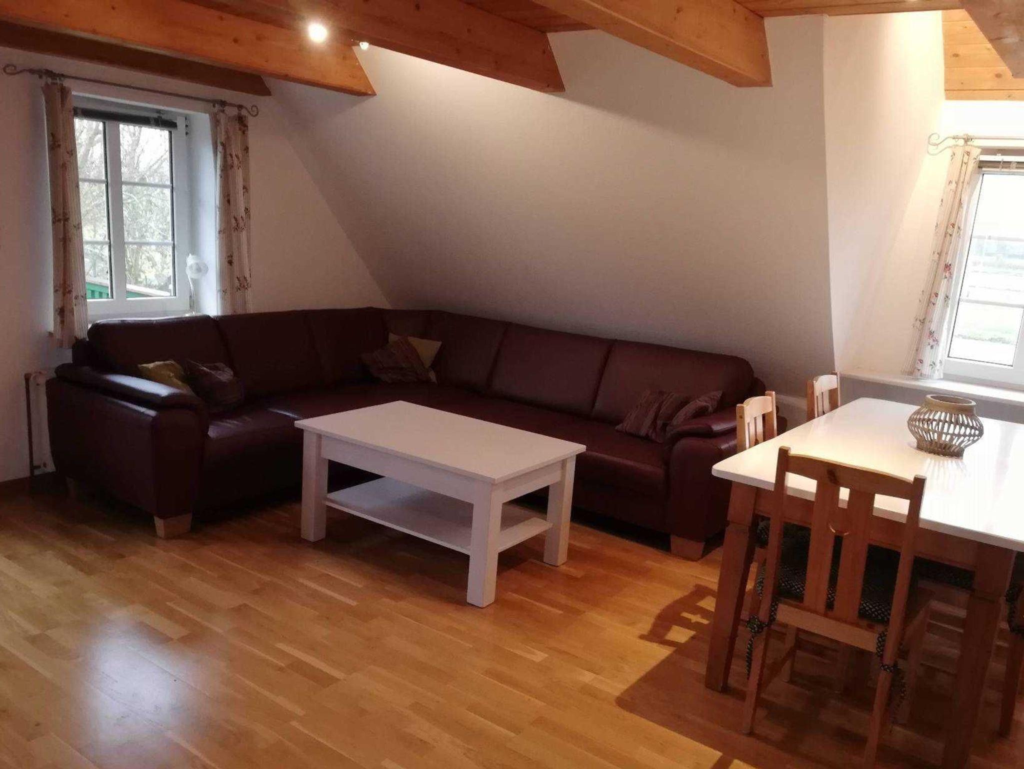 Die gemütliche Ferienwohnung mit Balkon befindet sich im 1. Obergeschoss. Hunde sind herzlich willkommen, müssen aber angemeldet werden.