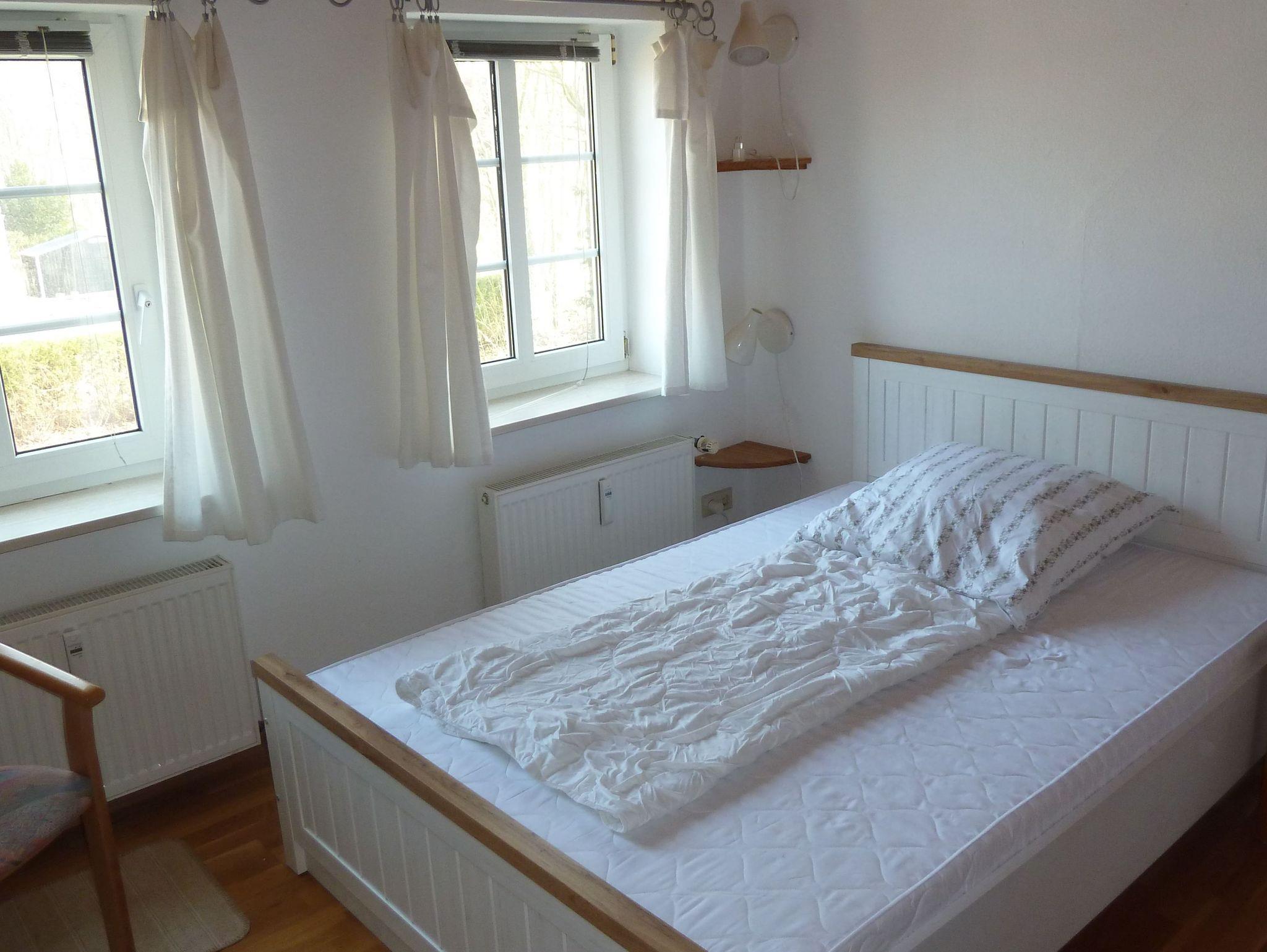 3 Schlafräume davon 1 Schlafraum mit Doppeltbett und 1 Schlafraum im Dachgeschoss mit 2 Einzelbetten, 1 (Kinder-)Schlafraum mit Einzelbett, von hieraus gelangt man in das Dachgeschoss. 1 großzügiger Wohnraum mit Esstisch, 1 separate Küche, 1 Badezimmer mit Dusche im Obergeschoss und ein renoviertes Bad mit Dusche im Dachgeschoss.