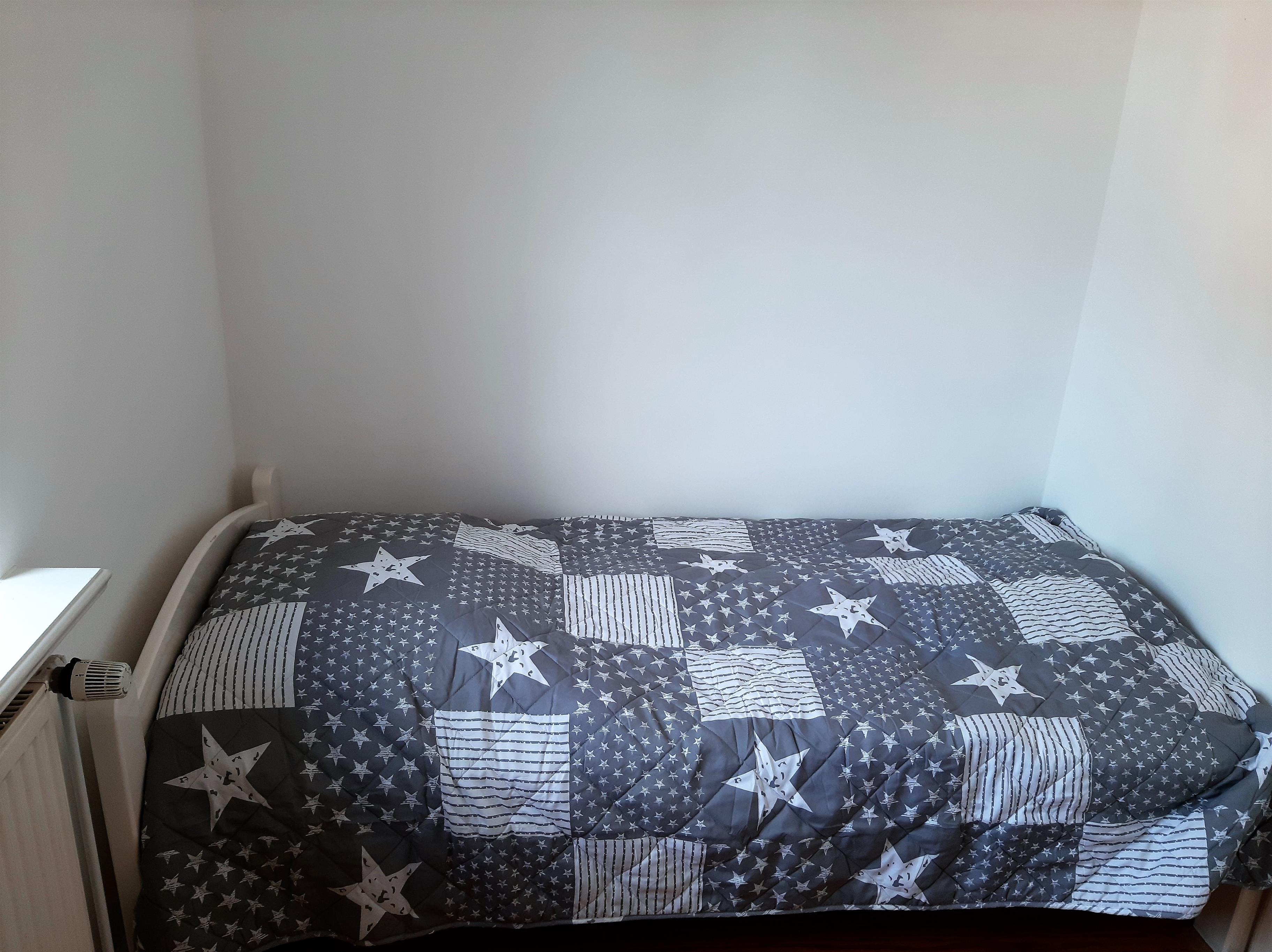 Im ersten Obergeschoss befindet sich das Hauptschlafzimmer mit einem Doppelbett (1,80 x 2,00 m) und einem geräumigen Einbaukleiderschrank. Ein Kinderbett kann problemlos im Schlafzimmer aufgestellt werden. Das angrenzende Kinderzimmer verfügt über zwei Einzelbetten (0,90 x 2,00 m). Das Duschbad liegt ebenfalls auf dieser Etage.