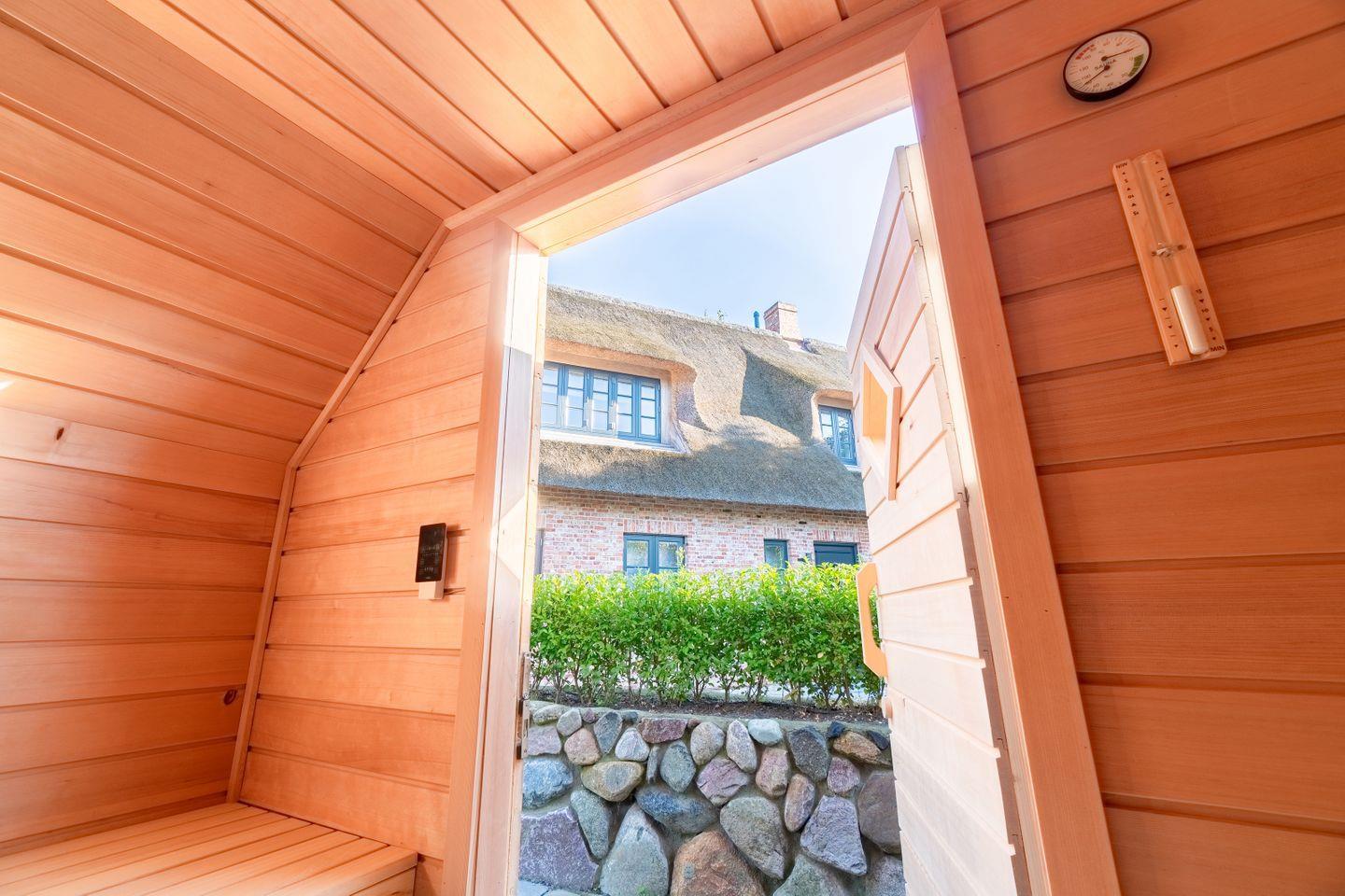 Exklusiver Hausteil unter Reet mit Sauna und Terrasse.