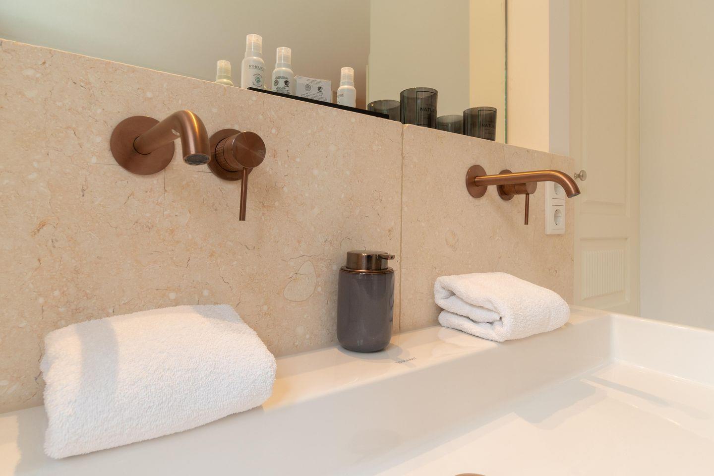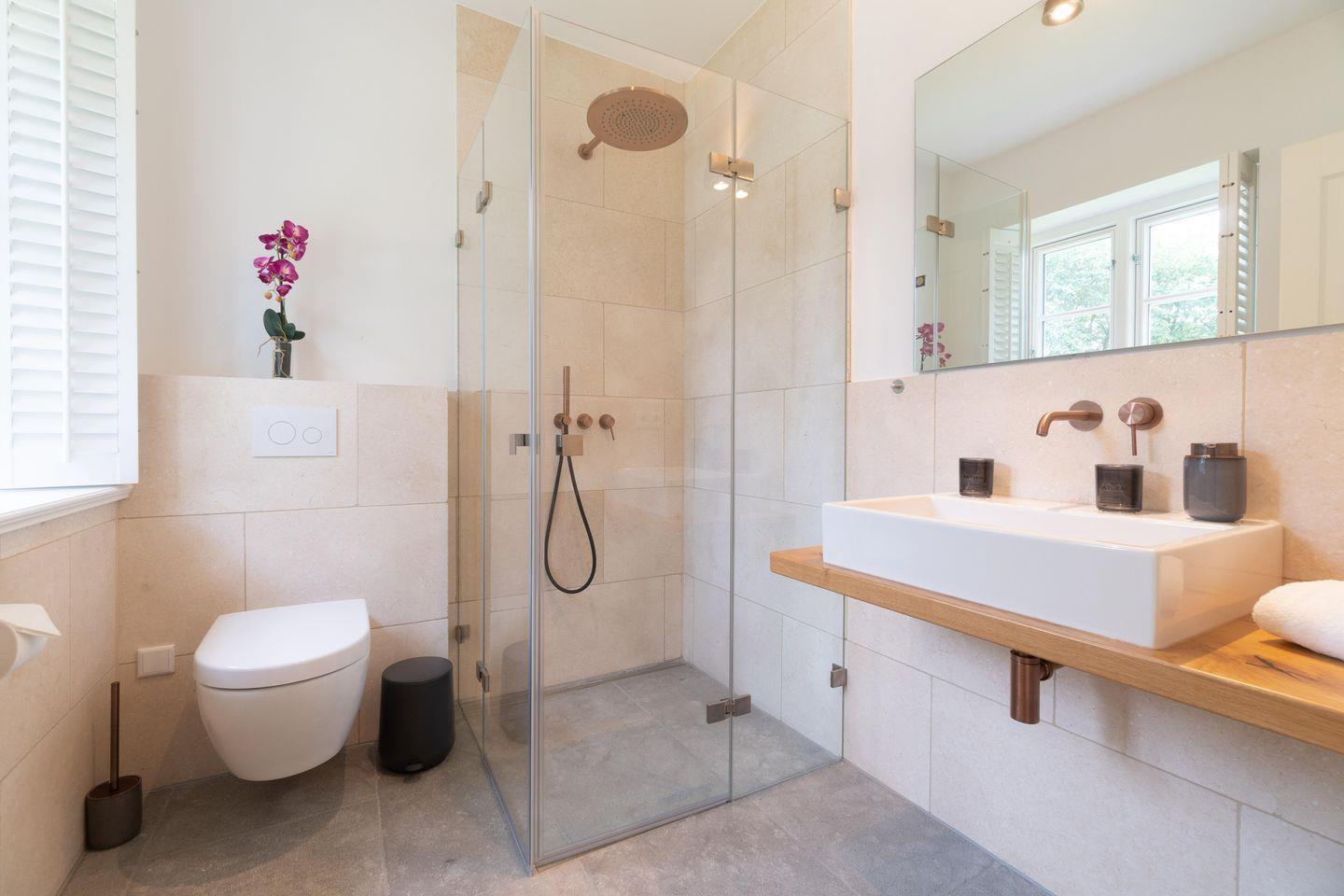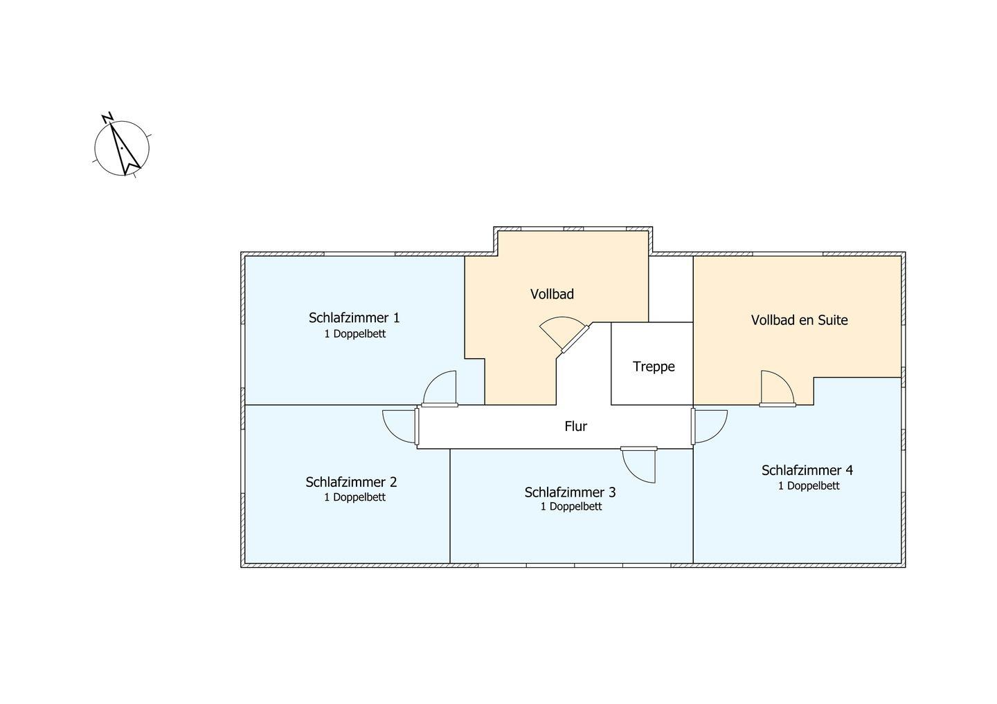 Im Obergeschoss finden Sie vier Schlafzimmer und zwei Vollbäder mit Walk-in Dusche, davon eines en Suite mit freistehender Badewanne und Smart-TV. Alle Schlafzimmer sind mit je einem Boxspringbett (180 x 200 cm) und einem eigenen Smart-TV sowie einem Internetradio oder alternativ mit einem Bluetooth-Lautsprecher der Marke Block ausgestattet.