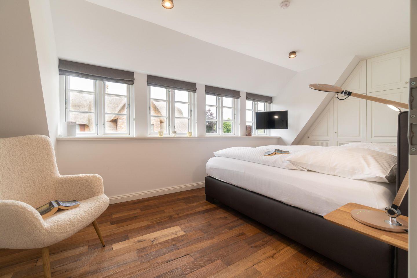 Das großzügige, mit viel Liebe zum Detail erbaute Einzelhaus unter Reet empfängt Sie mit großem Raumangebot, und hochwertiger Ausstattung. Es bietet Ihnen mit 4 Schlafzimmern, 3 Bädern, Sauna sowie gemütlichem Wohn- Essbereich einen idealen Ausgangspunkt für Ihre Unternehmungen auf der Insel. Nach einem sonnigem Strandtag oder einer Radtour können Sie den Tag auf der Terrasse, im Strandkorb oder mit einem Buch am wohligen Kaminfeuer ausklingen lassen. Nach einem Tag am Meer mit Wind und Wellen wärmt Sie die hauseigene Sauna im Spitzboden wieder auf.
