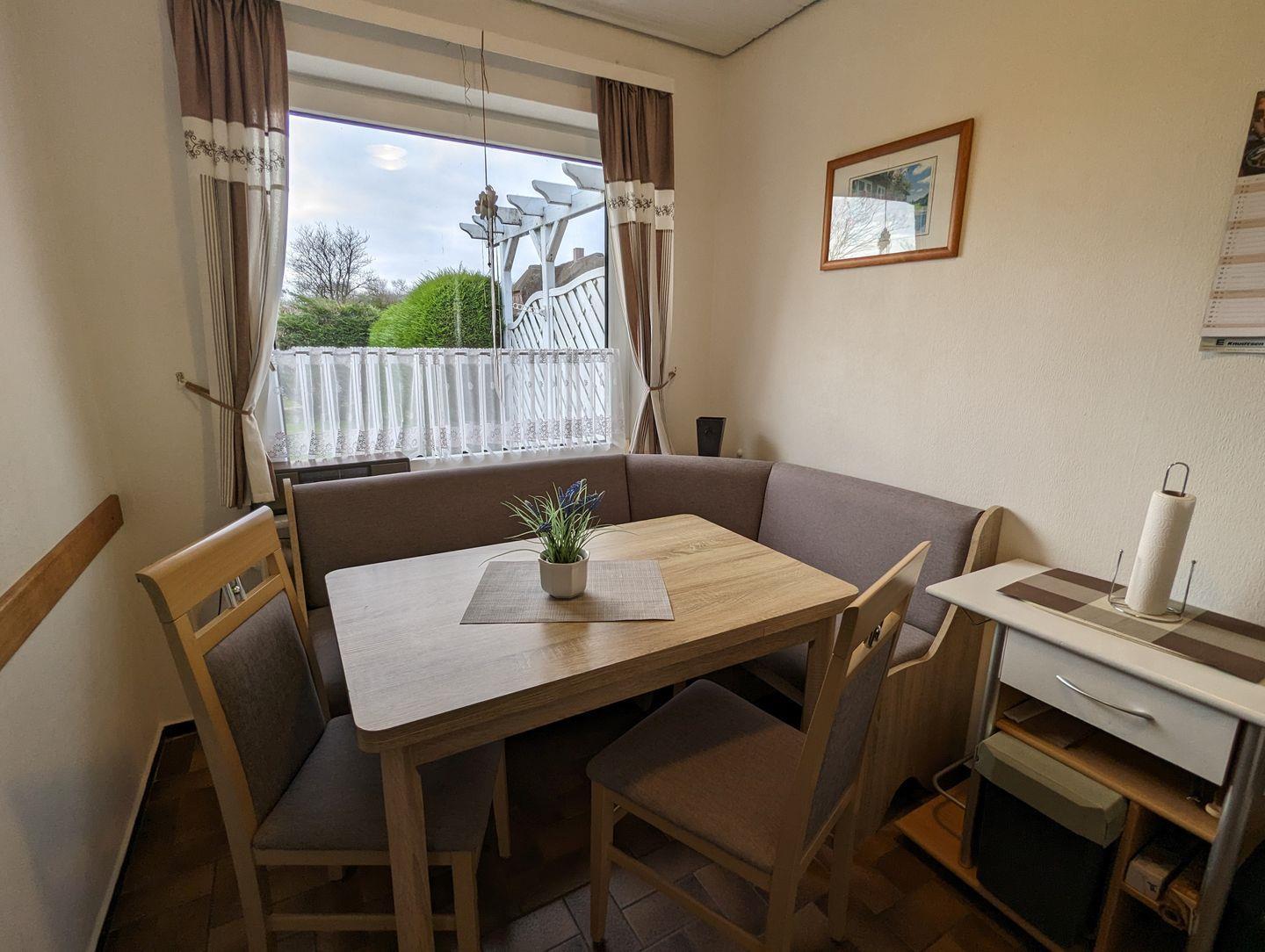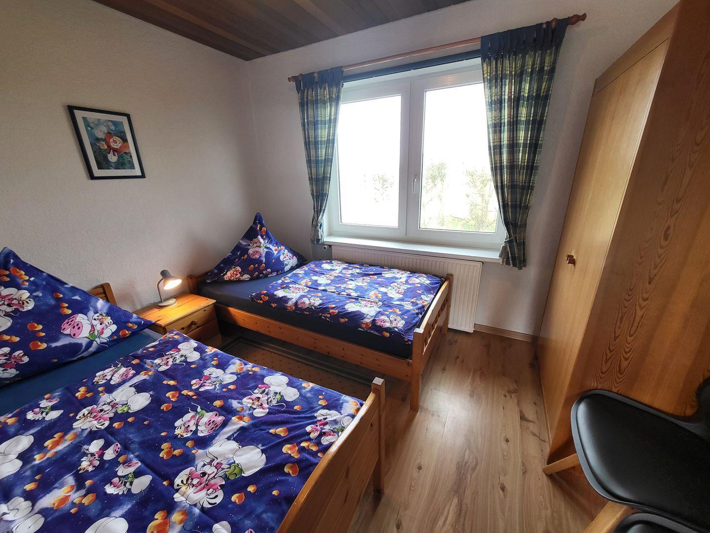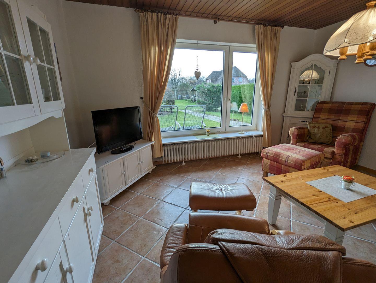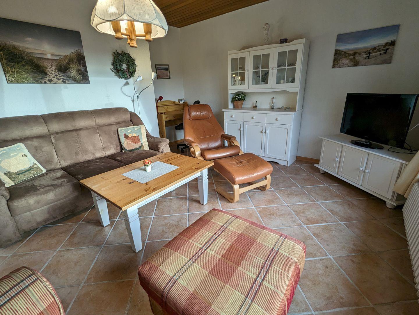 Das Haus ist wie folgt aufgeteilt: WOHNZIMMER (ein Ecksofa, ein Sessel, ein Couchtisch, Sat-TV, Radio, kostenloses WLAN), kleiner Garten mit einem Strandkorb, einer Süd-Terrasse mit Gartenmöbeln, Sonnenschirm und Markise, vollausgestattete KÜCHE mit Essbereich (u.a. Esstisch mit zwei Stühlen und einer Eckbank, Geschirrspüler, Backofen, Ceranfeld, Kühlschrank mit Gefrierfach, Kaffeemaschine, Toaster, Eierkocher, Besteck, Töpfe), SCHLAFZIMMER mit Doppelbett (180 x 200 cm), Kleiderschrank und Kommode, ein zweites SCHLAFZIMMER mit zwei Einzelbetten (ein Bett ist 90x190 cm groß, das zweite 90x 200 cm) und einem Kleiderschrank, BADEZIMMER mit Dusche, WC, Handtuchwärmer, Waschbecken, Spiegelschrank, Föhn, sowie ein FLUR mit einer kleinen Garderobe für Jacken. Ein PKW-Stellplatz befindet sich direkt am Haus. Die Fahrräder können Sie in Ihrem kleinen Garten abstellen. Eine Infrarotkabine im Haus nebenan kann mitbenutzt werden.