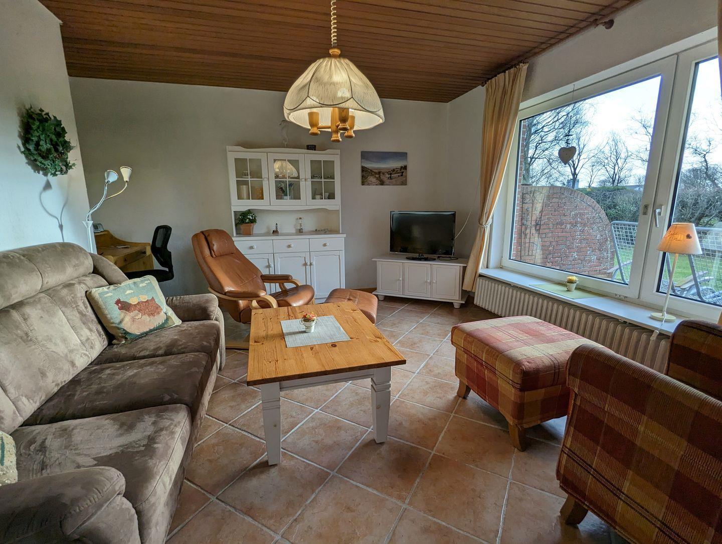 Auf der großen Süd-Terrase können Sie die gute Nordseeluft genießen, entspannen, ein Buch lesen oder ein Sonnenbad nehmen. In der Nähe des Hauses befinden sich ein Bäcker, ein Hofladen mit frischer Milch und Käse aus eigener Herstellung, ein Café, eine Bushaltestelle, das Museum der Westküste, sowie drei Reiterhöfe.