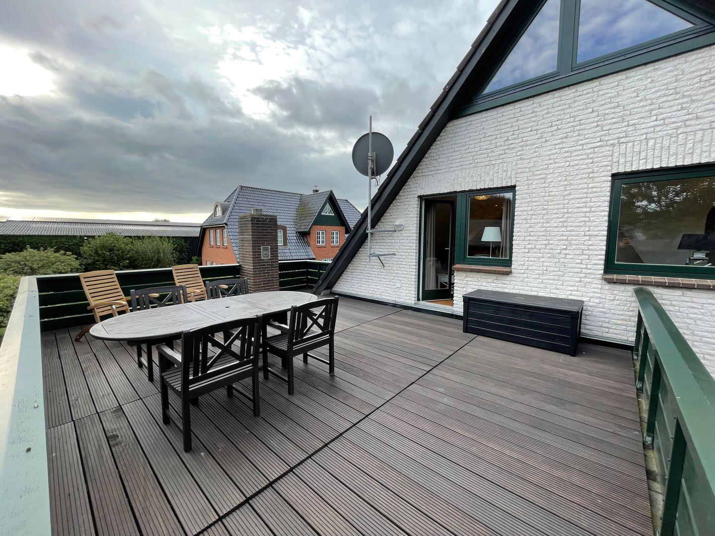 Zu den Highlights der Ferienunterkunft zählen wir u. a. die eigene Dachterrasse.