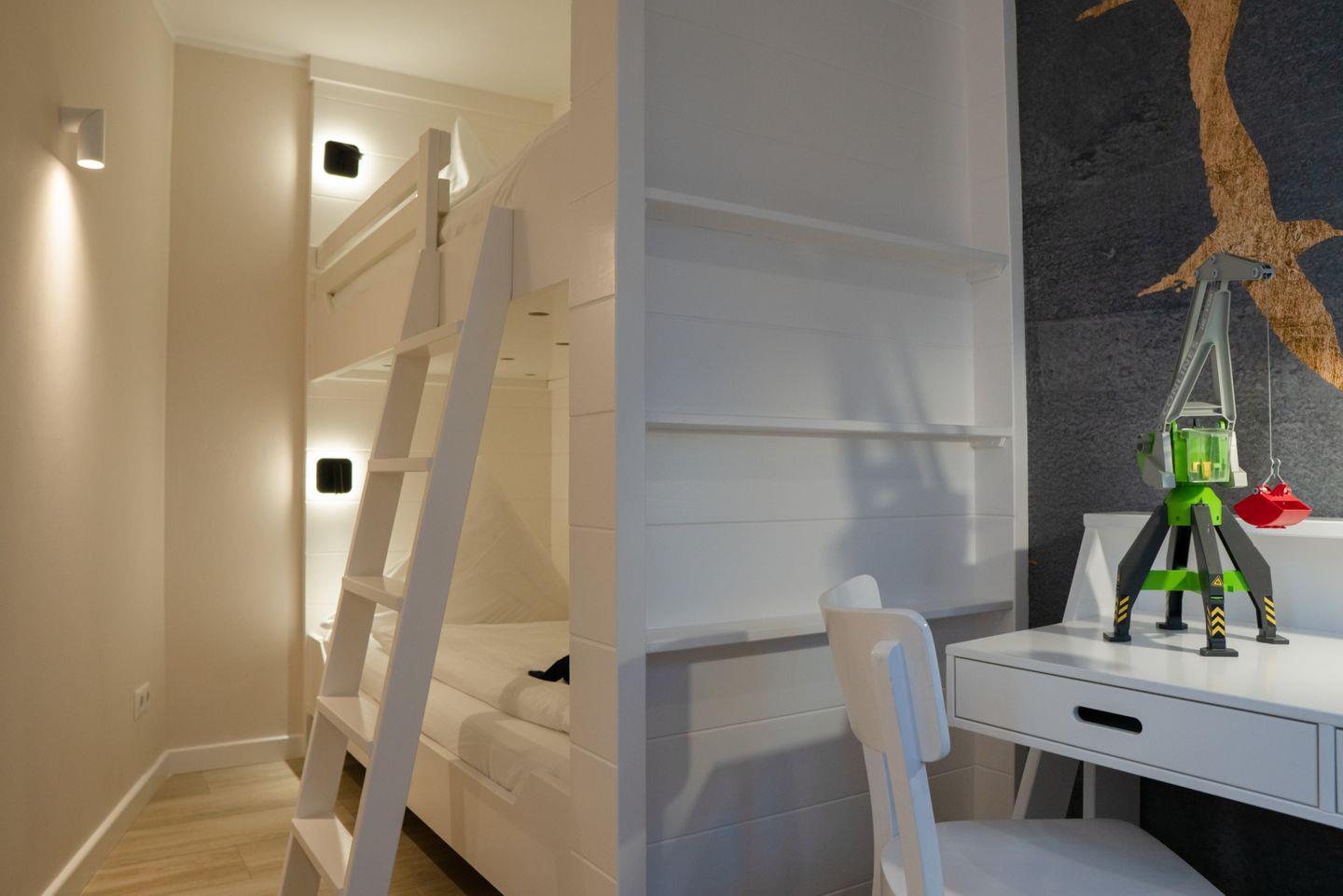Das Familienzimmer 02 ist in ein Wohn-Schlafzimmer mit einem Doppelbett, ein weiteres Schlafzimmer mit einem Stockbett, sowie ein Vollbad unterteilt und bietet somit komfortabel Platz für bis zu 4 Personen zuzüglich einer Kleinkinderaufbettung. Zudem steht Ihnen eine eigene Terrasse zur Verfügung.