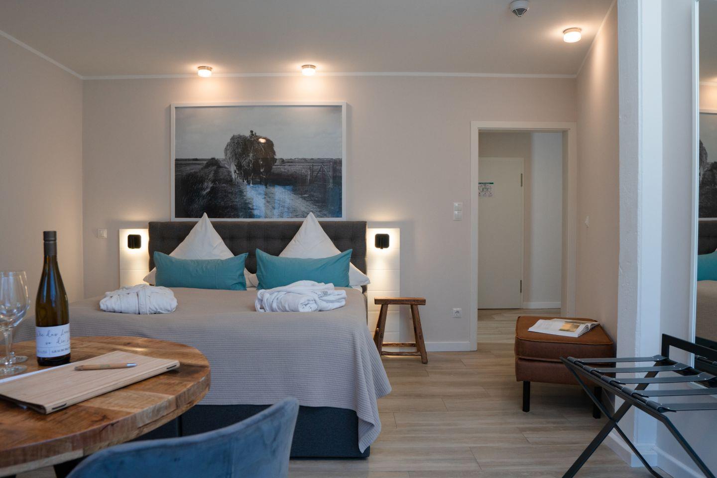 Exklusives Familienzimmer im Boutique Hotel Landliebe auf Föhr mit eigener Terrasse und großem Spielplatz.