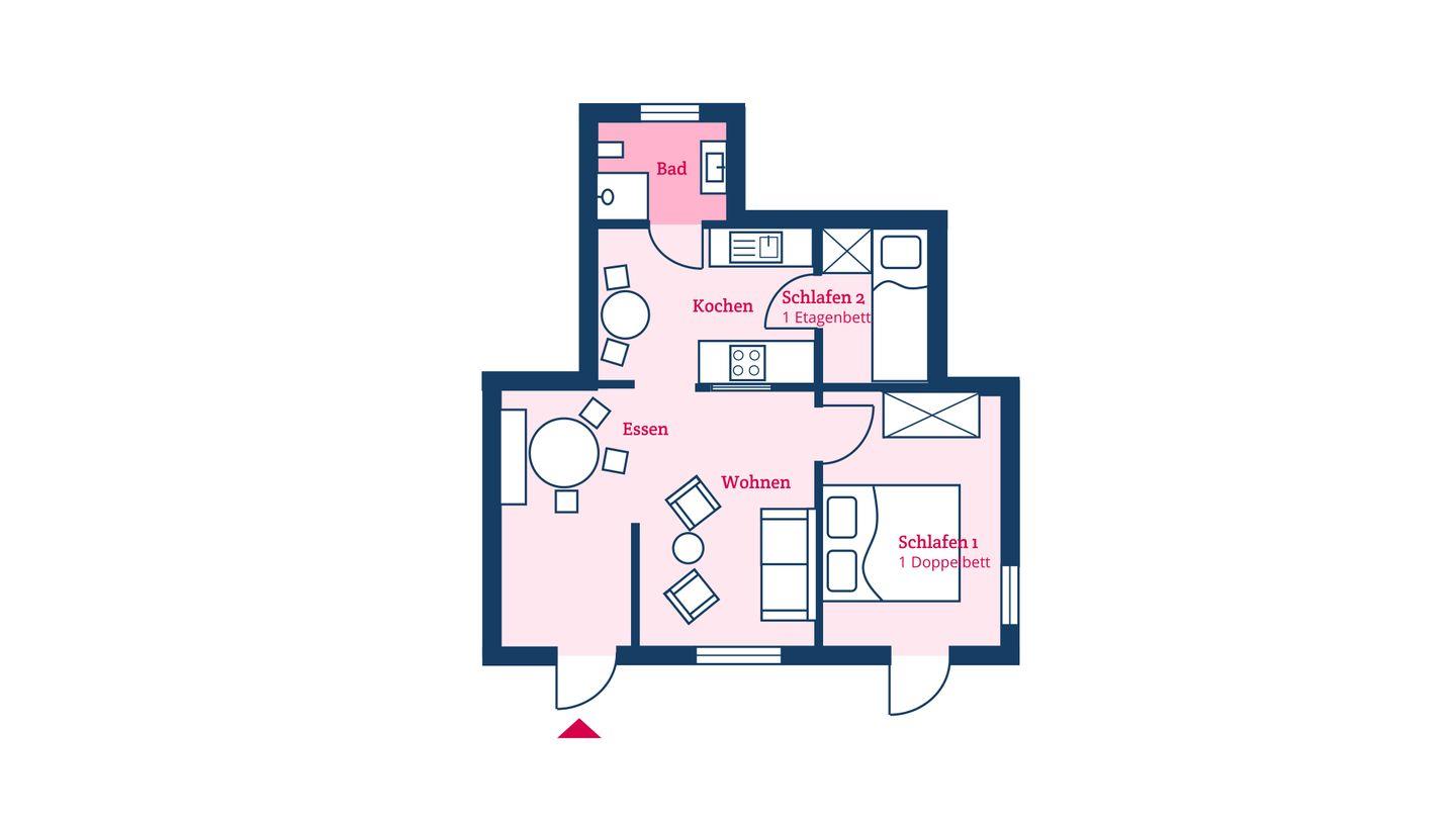 Appartement für bis zu 4 Personen.