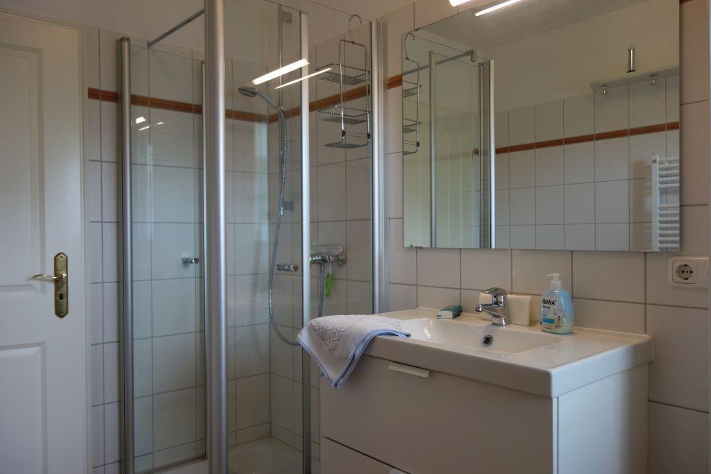Die Wohnung bietet Ihnen drei behagliche Schlafzimmer (ausgestattet zweimal mit einem Doppelbett 180*200 cm und einmal mit einem Einzelbett 90*200 cm), die mit Fliesenboden ausgelegt sind. Sie sind einladend und komfortabel eingerichtet und garantieren erholsamen Schlaf nach einem Tag voller Aktivitäten. Zudem ist ein modernes Badezimmer mit bodengleicher Dusche, WC sowie Waschbecken vorhanden. Frische Handtücher und Bettwäsche sind bereits aufbereitet und stehen Ihnen zur Verfügung.