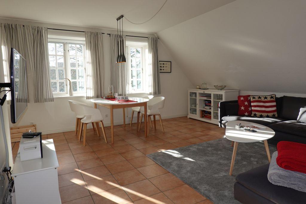 Im Hüs Dikstian bieten wir Ihnen 5 Ferienwohnungen unterschiedlicher Größe. Hier stellen wir Ihnen die Whg. 4 im 1.OG vor. In dieser Wohnung versetzt einen die maritime Deko sogleich in Urlaubsstimmung. Eine riesige Couch über Eck für eine entspannte Zeit, ob TV sehen oder Bücher lesen, so oder so nimmt diese Wohnung den Stress von der Seele. Die offene Küche schirmt auch den Koch nicht ab, hier können alle zusammen kochen. Zwei Schlafzimmer und das Duschbad sorgen für Rückzugsmöglichkeiten. Lassen Sie sich einnehmen - Urlaub pur in Alkersum