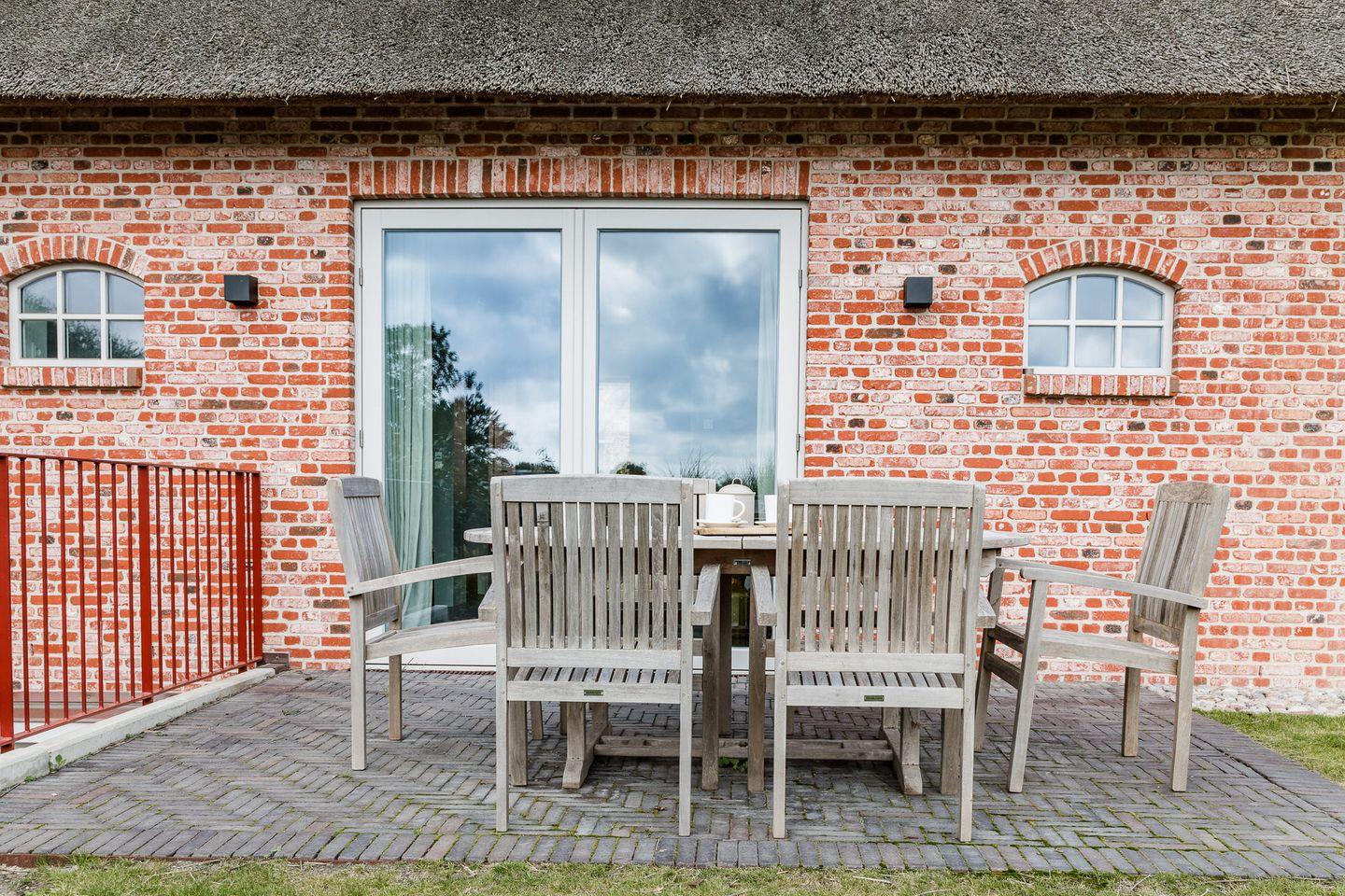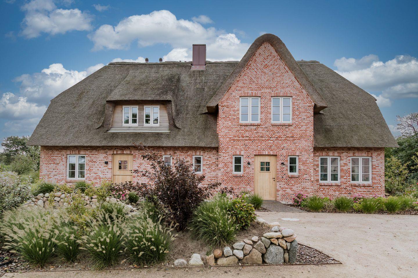 Reetgedeckte Doppelhaushälfte in ruhiger Ortsrandlage mit eigener Sauna und Garten mit Terrasse.