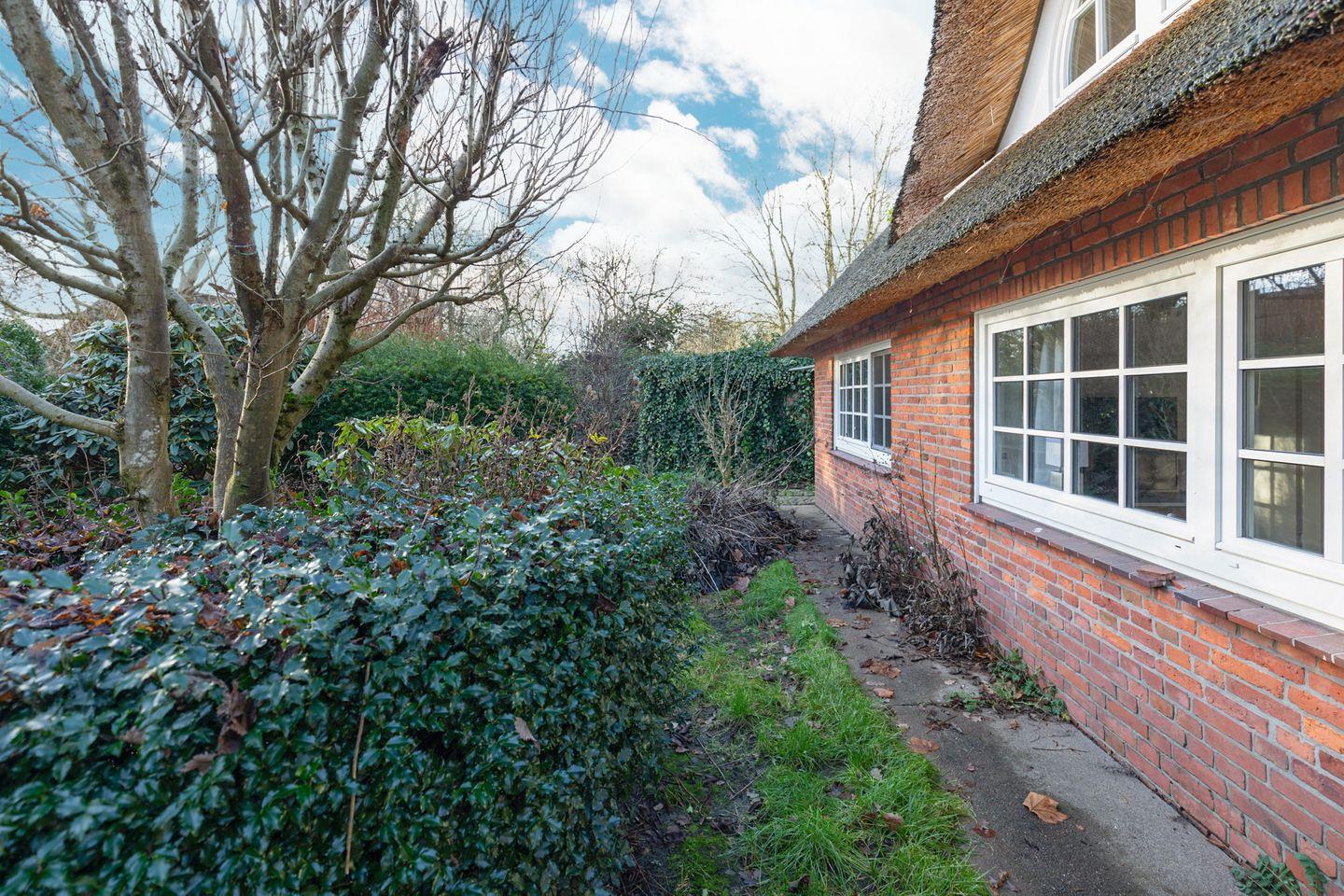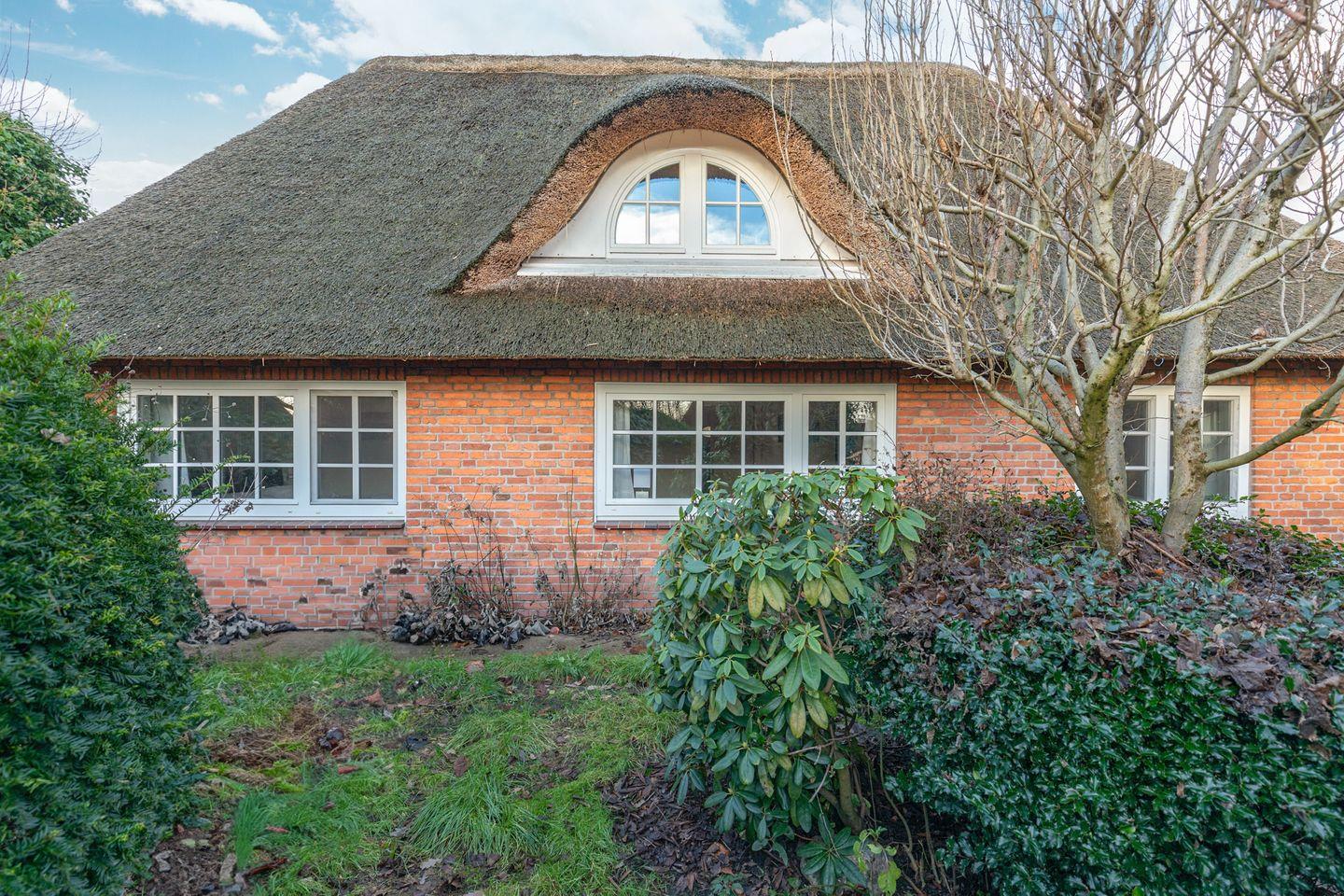 Gemütliches Reetdachhaus in Almdorf mit Sauna, eingezäuntem Garten und moderner Ausstattung für entspannte Nordseeferien.