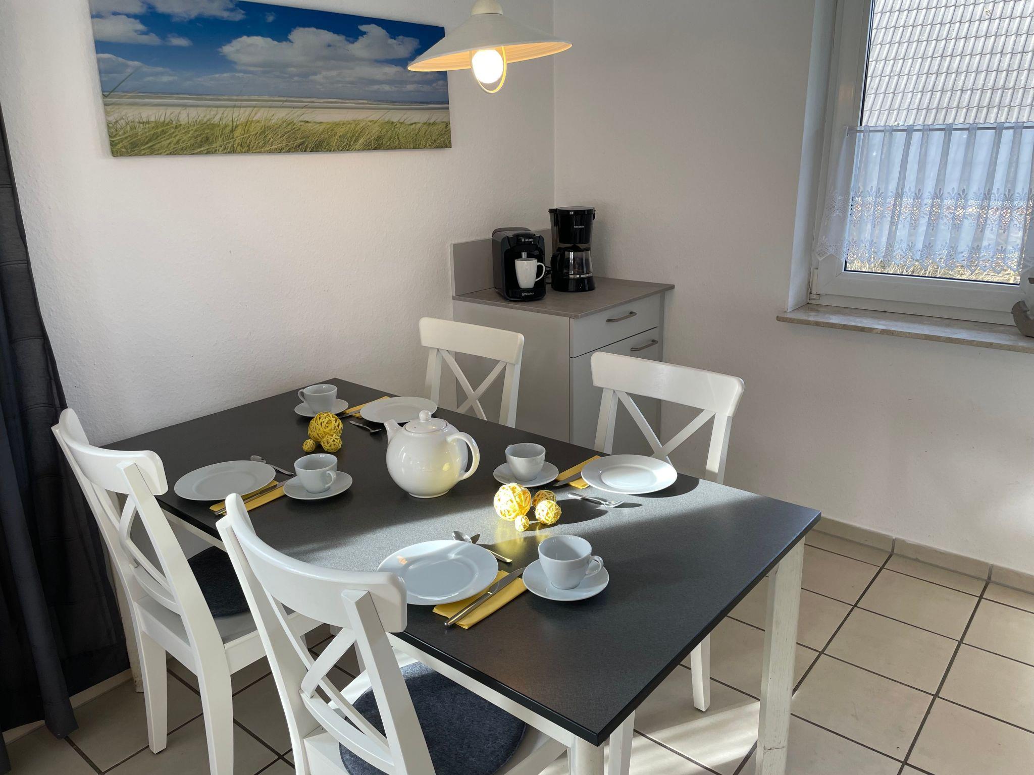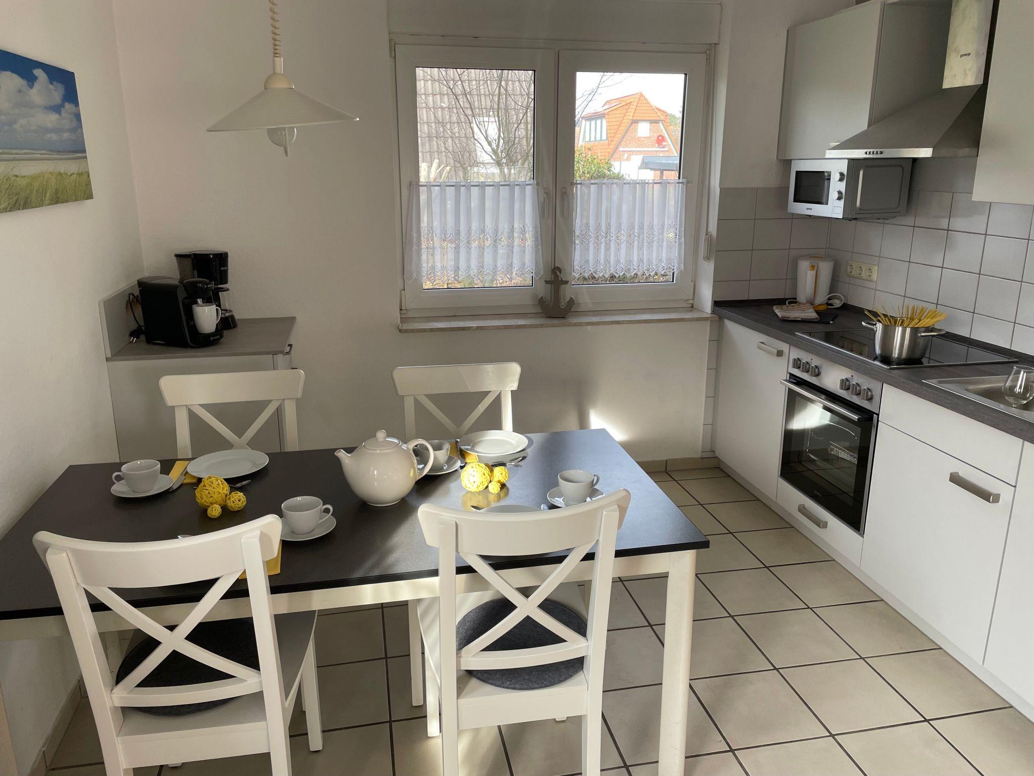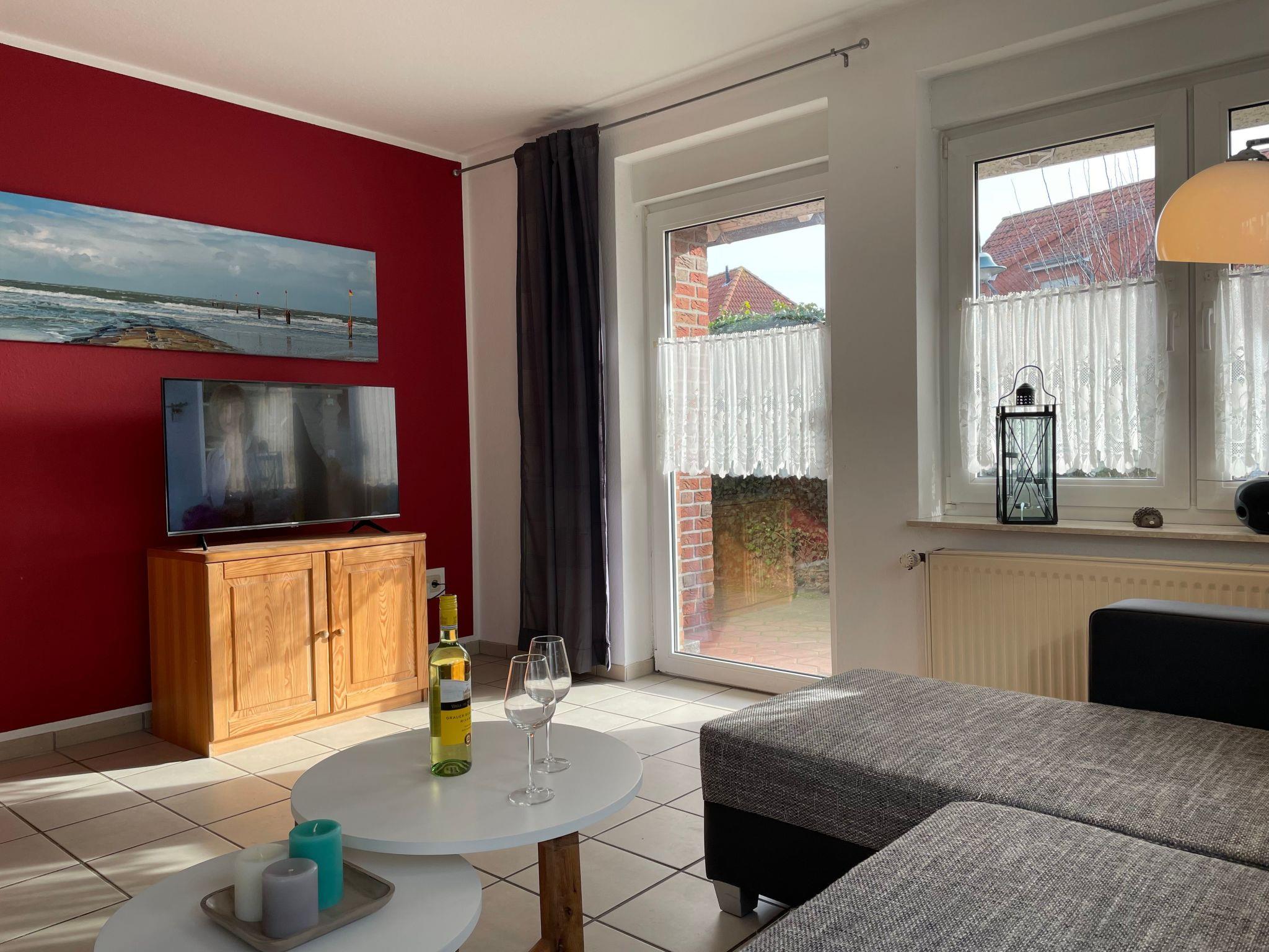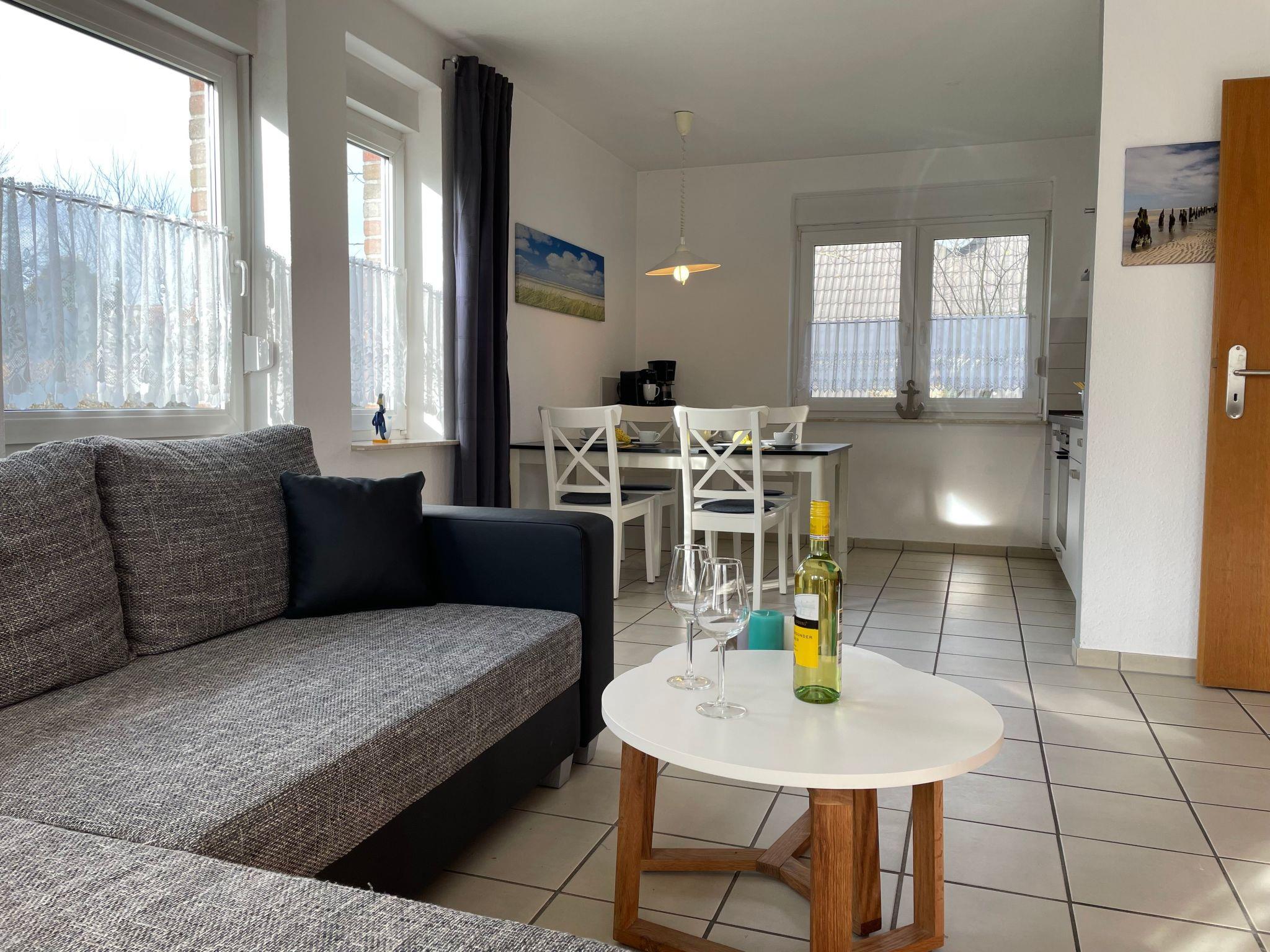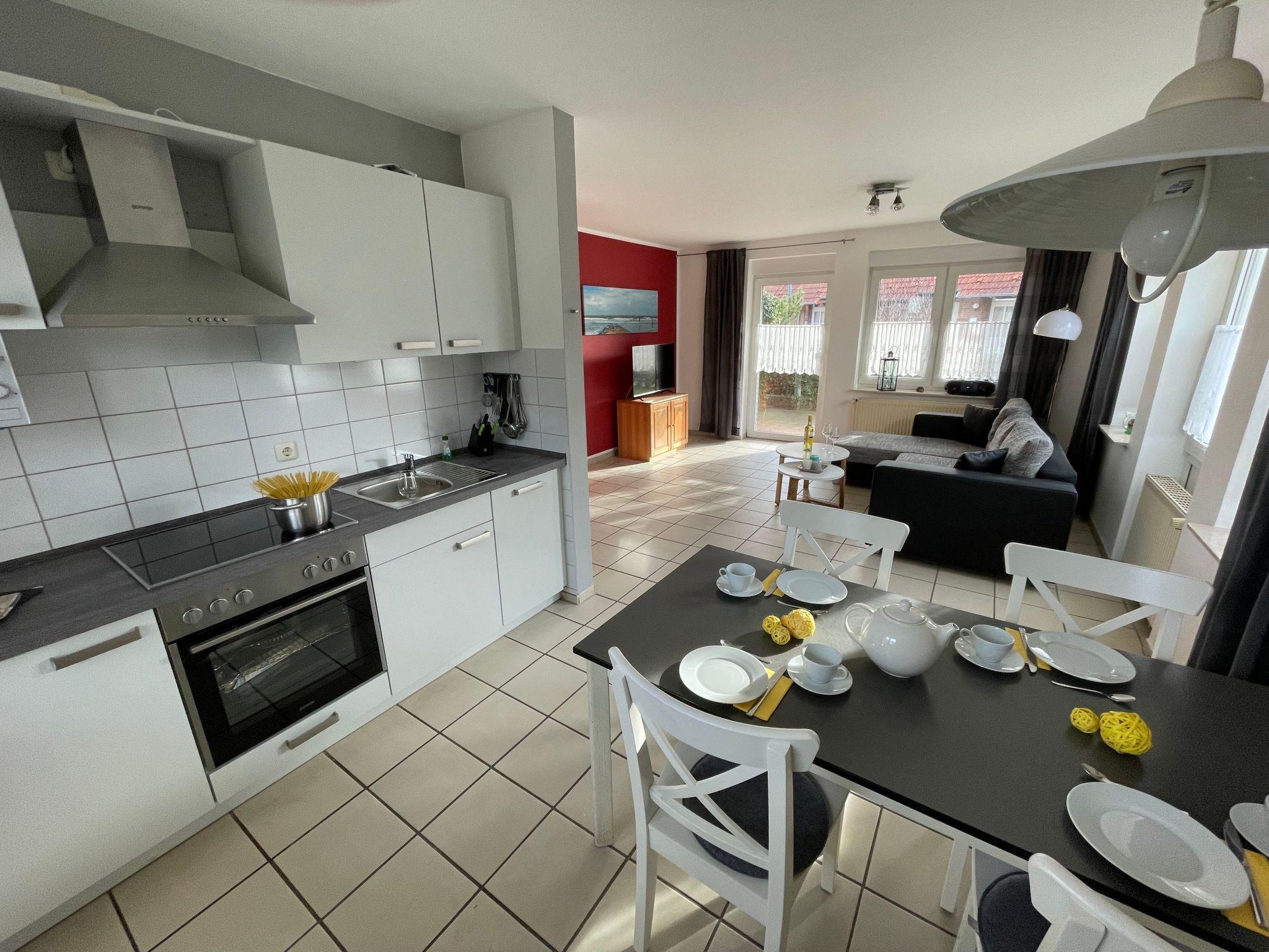 Die Ferienwohnung liegt im Erdgeschoss eines ruhigen Hauses mit vier Ferienwohnungen an der Kurpromenade 8, einer ruhigen Sackgasse unweit des maritimen Yachthafens von Harlesiel. Fußläufig erreichen Sie den Badestrand (Entfernung ca. 400 Meter) und die Cliner-Quelle (Entfernung ca. 500 Meter).Die Wohnung mit separatem Eingang verfügt über ein lichtdurchflutetes Wohnzimmer mit Couchgarnitur und SAT-TV, Essbereich sowie moderner, voll ausgestatteter Küche (mit Spülmaschine und Mikrowelle). Ein Highlight der Wohnung stellt die sonnige Südterrasse mit hochwertigen Gartenmöbeln sowie der eigene große Garten, der ebenfalls nach Süden ausgerichtet ist, dar. Neben dem Elternschlafzimmer mit gemütlichem Doppelbett verfügt die Wohnung noch über ein kleines Schlafzimmer mit Einzelbett. Ein hell ausgestattetes Duschbad rundet die gut ausgestattete Wohnung gelungen ab. Ein Pkw-Abstellplatz ist auf dem Grundstück.Die Wohnung kann von bis zu 4 Personen und Kleinkind genutzt werden.Ein eigener Abstellraum für Kinderwagen, Fahrräder o.ä. steht zur Verfügung.Bettwäsche und Handtücher sind selbst mitzubringen.WLAN steht den Gästen kostenfrei zur VerfügungKurzbeschreibungSonstiges : NichtraucherhausKurzbeschreibung 1Anzahl Küchen : 1
