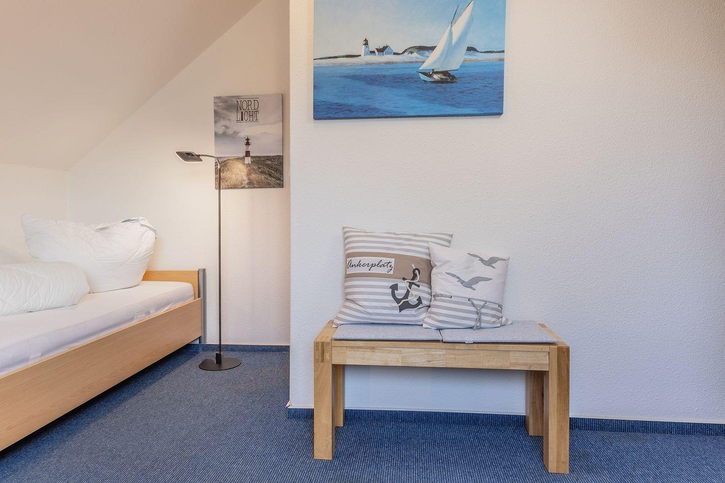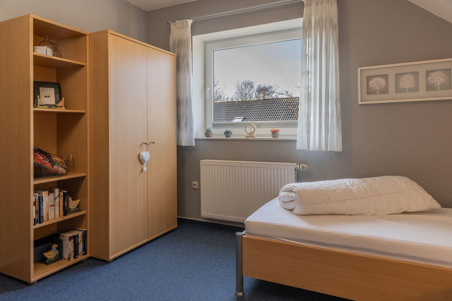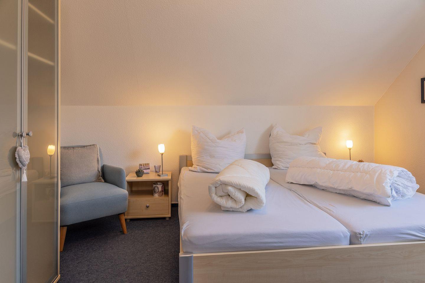 Obergeschoss: 1 Schlafzimmer mit Doppelbett (180x200cm), 1 Schlafzimmer mit 2 Einzelbetten (90x200cm), zustellbares Kinderreisebett