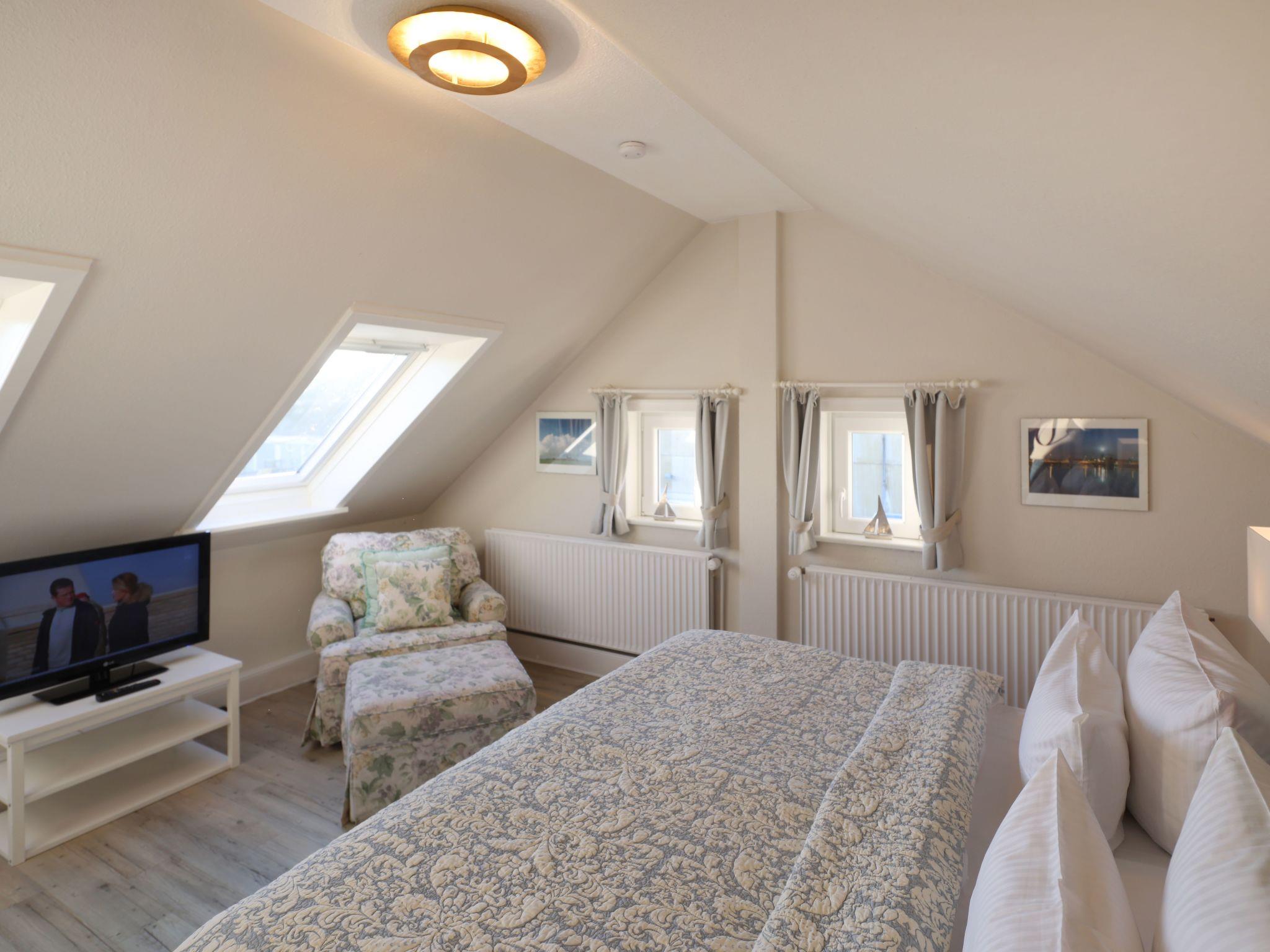 Wir heißen Sie herzlichst willkommen in unserer 4-Zimmer-Ferienwohnung Strand-Loft in der neu eröffneten "Strandvilla Schützenstraße 4" in Westerland. Die großzügig gestaltete Wohnung mit ca. 86 qm erstreckt sich über 2 Ebenen (1. Obergeschoß und Dachgeschoß).Eintreffen und wohlfühlen - lautet hier die Maxime!Die großzügige 4-Zimmer-Obergeschosswohnung bietet Ihnen Platz für bis zu 5 Personen. Vom Flurbereich geht sowohl die Treppe ins Dachgeschoss zum großen Elternschlafzimmer mit Flat TV ab als auch das Duschbad und die beiden Einzelschlafzimmer mit Verbindungstür. Die Küche ist ausgestattet mit Essecke, Mikrowellenbackofen, Geschirrspüler und 2er Cerankochfeld. Von hier aus gelangen Sie ins helle Wohnzimmer mit Couch, Stressless-Relax-Sessel und großem Flat TV mit DVD Player. Auf dem sonnigen Südbalkon warten Tisch und Stühle auf Sie.Das große Schlafzimmer bieten Ihnen ein behagliches Doppelbett zum Träumen an. Im 1. Obergeschoss laden zwei Einzelbettzimmer zum Wohlfühlen ein. Im Wohnzimmer bietet sich mit einer Schlafcouch eine weitere Möglichkeit an.Im Souterrain des Hauses befinden sich Waschmaschine und Trockner, ein Bügelbrett und Bügeleisen sowie eine Sauna (gegen Gebühr), die gemeinschaftlich genutzt werden können. Selbstverständlich gibt es im gesamten Haus Free Wifi.Ob in weichen Polstern , am großen Esstisch oder auf dem Balkon: Es bieten sich viele Möglichkeiten gemeinsam zu entspannen und zu genießen. Zu jeder Jahreszeit.Kommen Sie mit großen Erwartungen, diese werden hier erfüllt!