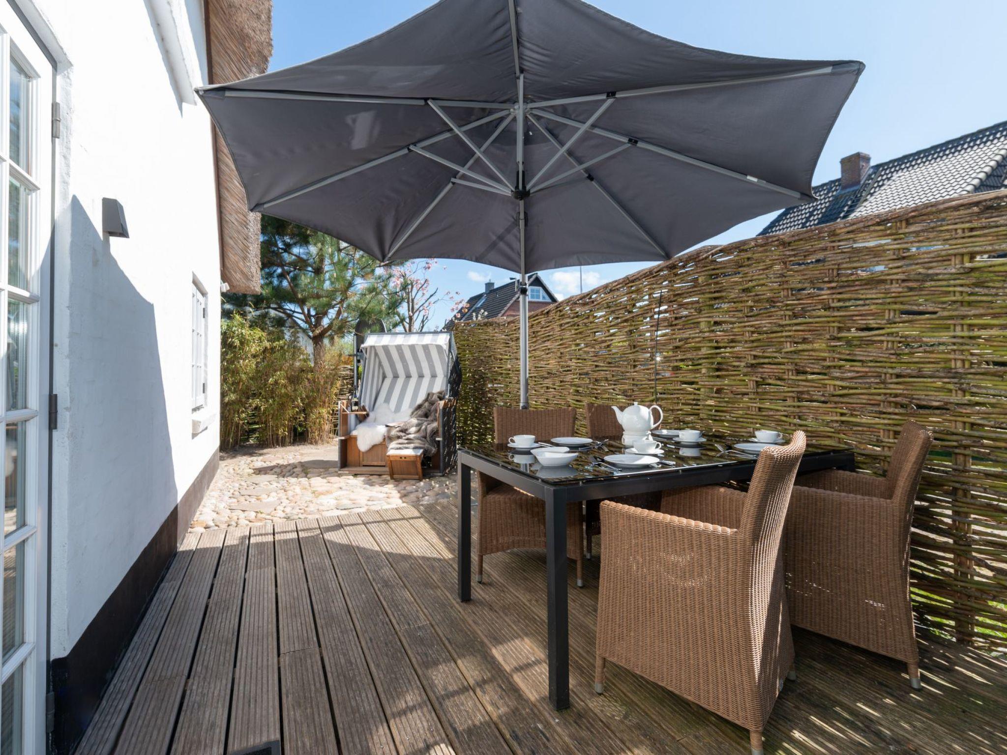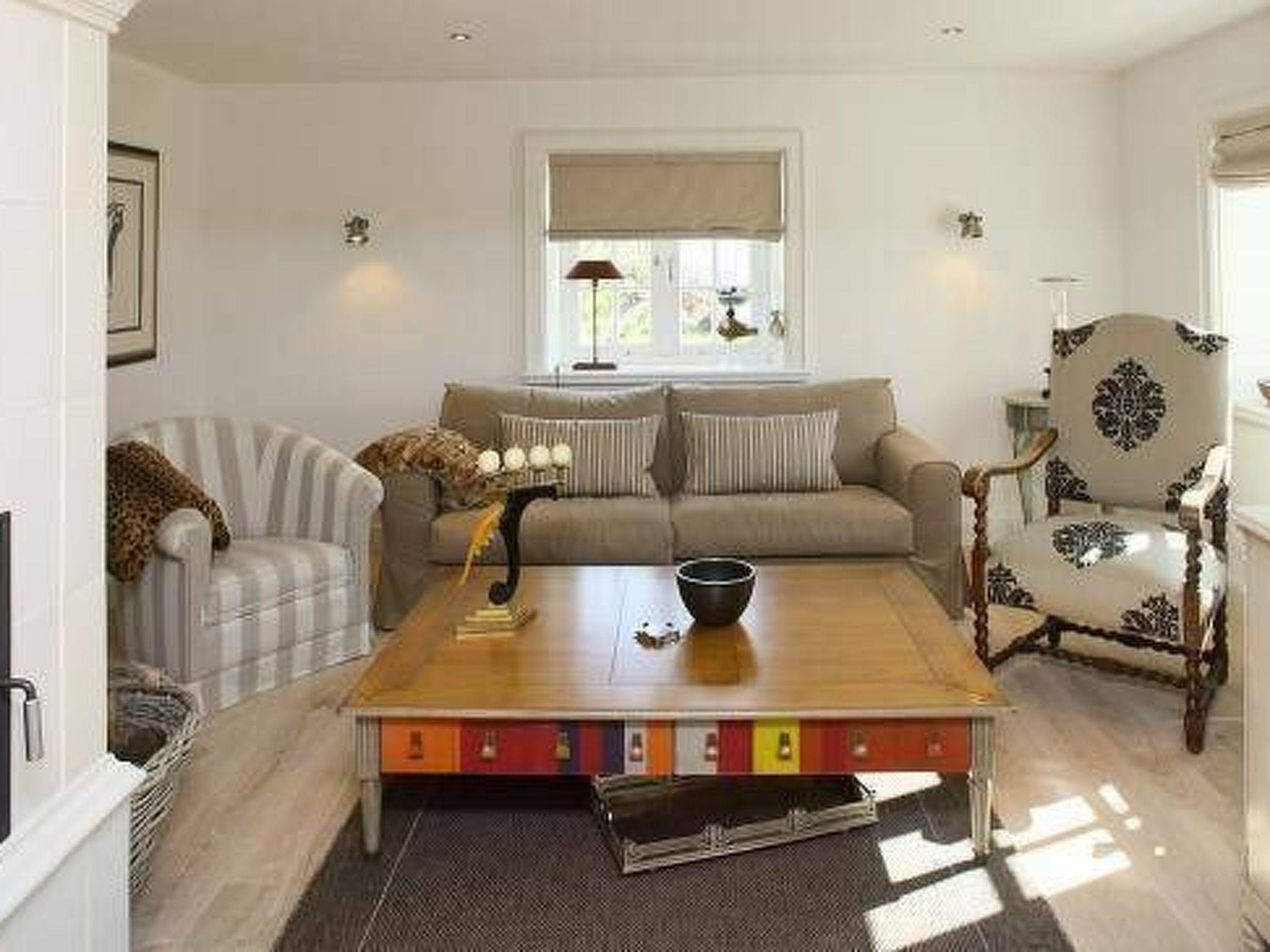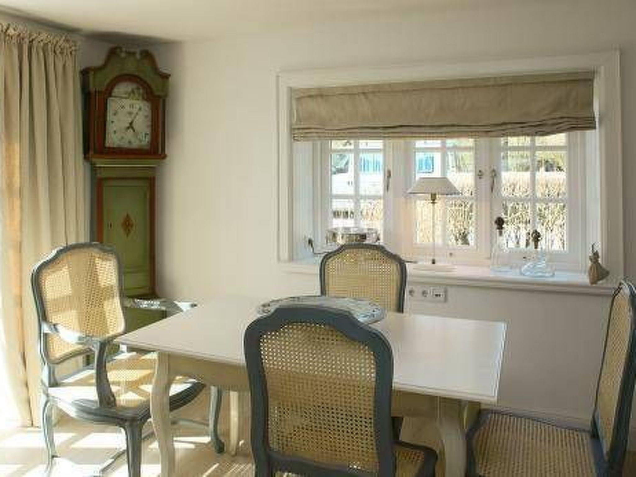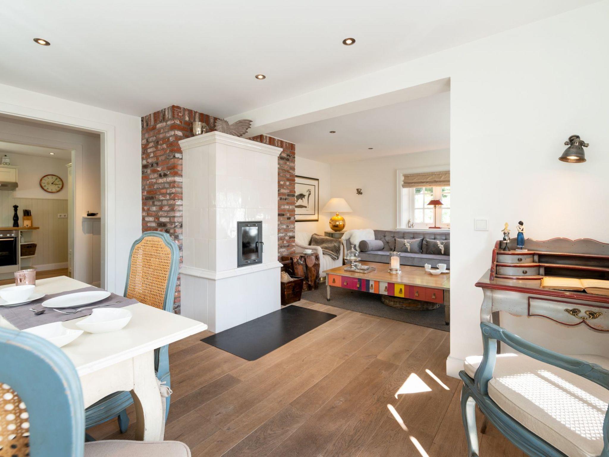 Sehr luxuriöse Ferienwohnung über zwei Etagen in einem Reetdachhaus mit großem Grundstück. Diese Ferienwohnung befindet sich in einem Reetdachhaus in ruhiger Lage im Süden von Tinnum auf der Insel Sylt.Die Ferienwohnung liegt im Süd/West-Flügel des Landhauses Treskersand und hat eine Wohnfläche von ungefähr 110 m². Sie erstreckt sich über zwei Etagen und bietet bis zu fünf Personen ausreichend Platz. Sie betreten den Hausteil durch eine edle Friesentüre. Zur linken Seite befindet sich die voll ausgestattete Landhausküche, ein Abstellraum mit Waschmaschine, Bügelbrett usw. Nach rechts betreten Sie das große Ess-und Wohnzimmer mit traditionellem Kachelofen. Im Badezimmer gibt es eine große Dusche mit Rainshower und WC. Im Erdgeschoss gibt es ein zusätzliches Gäste-WC. Im oberen Bereich befinden sich die beiden Schlafräume. In einem gibt es ein großes Doppelbett mit Schlafcouch und LED Fernseher. Zwei getrennte Betten stehen im anderen Schlafzimmer bereit. Ein weiteres WC ist hier vorhanden.Ihr Außenbereich besteht aus eigenem Garten mit Gartenmöbeln, Strandkorb und Liegen. Er ist vom Wohnzimmer aus zugänglich. Es gibt auch einen eigenen Stellplatz für Ihren Pkw. Das Haus liegt ruhig eingebettet auf einem 1100 m² großen Gartengrundstück.Hunde auf Anfrage. Katzen sind leider nicht gestattet. Die Wohnung ist mit hochwertigen Eichendielen, einer alten 100 jährigen Rotsteinwand, zwei LED-Fernseher, W-Lan und Fußbodenheizung ausgestattet. In der Küche befindet sich ein Nespresso-Automat. Die Wohnung ist mit 5-Sterne-Luxus vom DTV ausgezeichnet worden. Landhaus Treskersand ist aktuell eins der schönsten restaurierten Reetdachhäuser auf der Insel Sylt. Es wurde Anfang 2012 komplett saniert.Die Unterkunft liegt in ruhiger Lage am Rande von Tinnum. Einkaufsmöglichkeiten befinden sich in ungefähr einem Kilometer Entfernung. Der Strand ist ca. zwei Kilometer entfernt. Den nächsten Bäcker erreichen Sie in fünf Gehminuten. Der Tierpark in Tinnum ist 750 Meter entfernt.