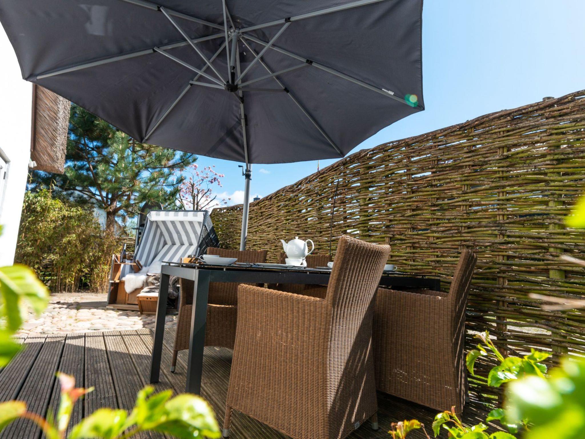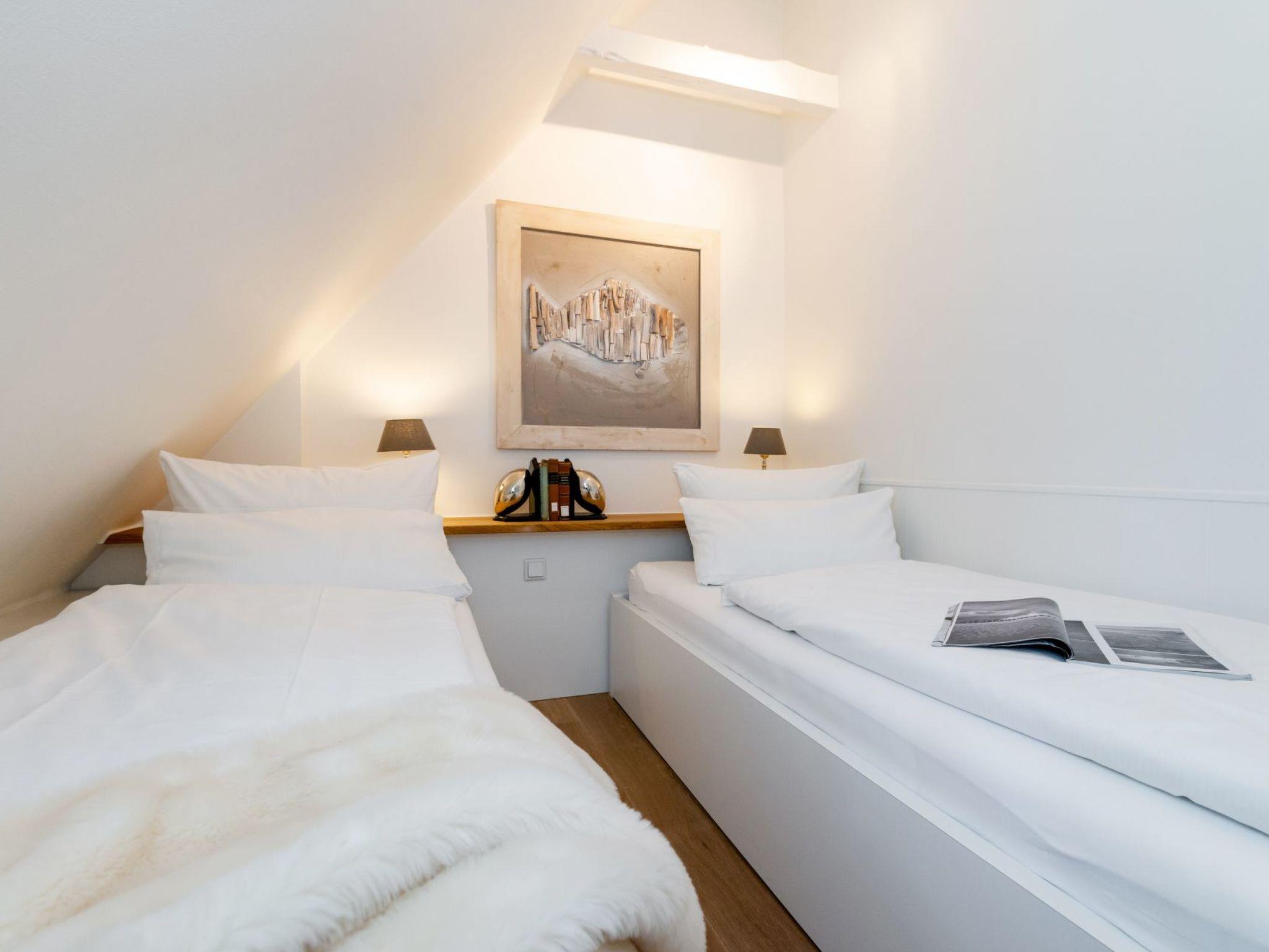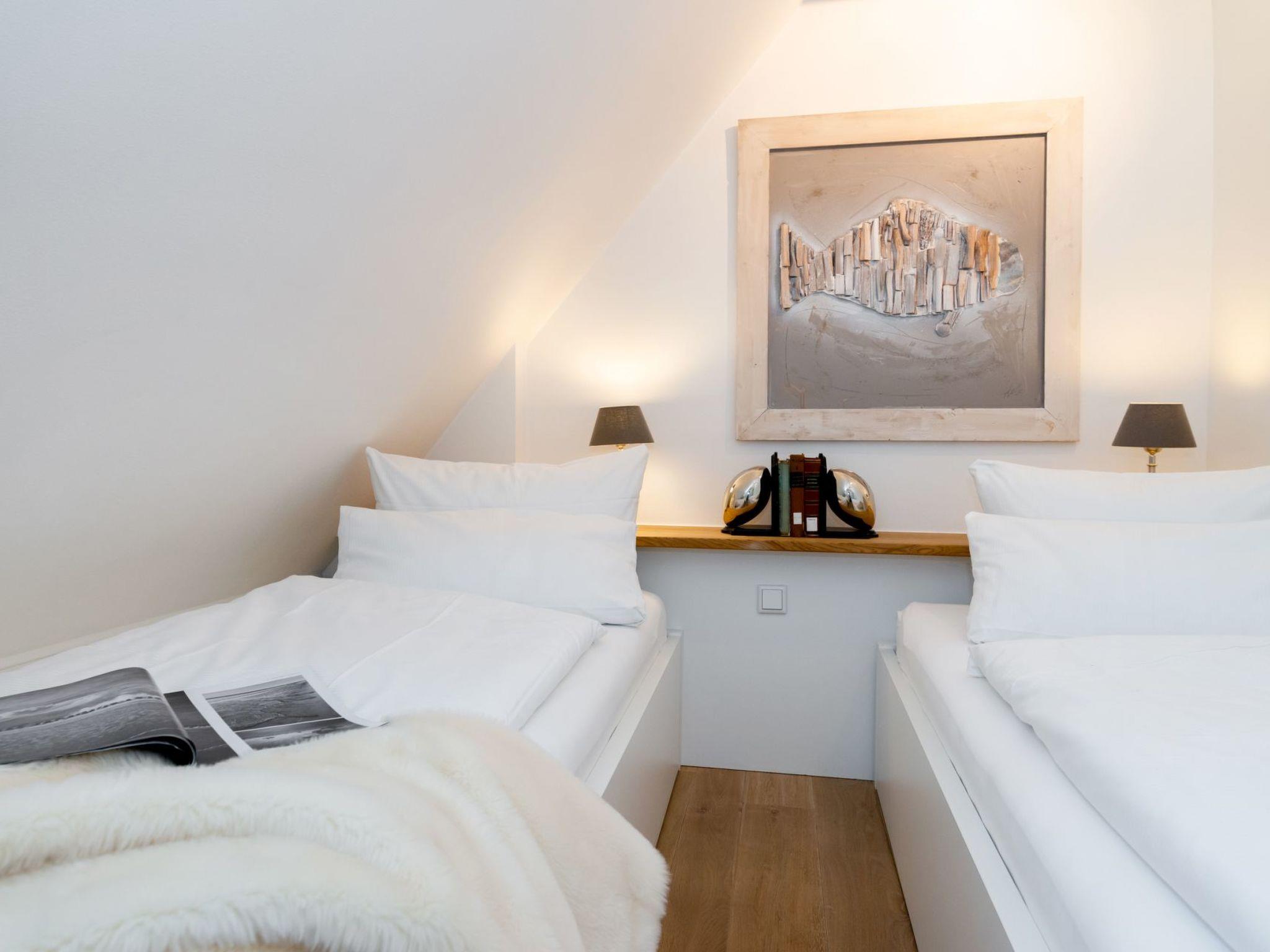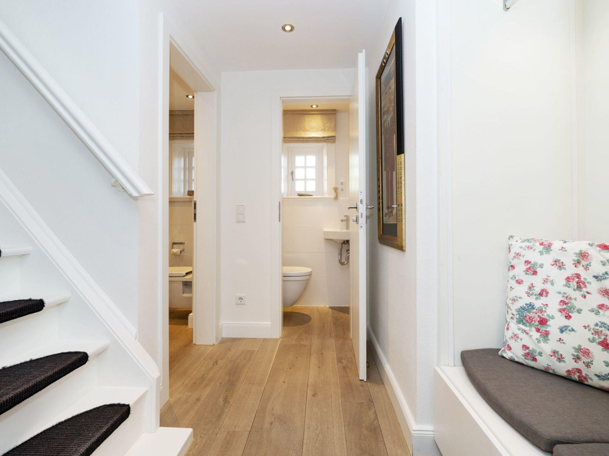 Sehr luxuriöse Ferienwohnung über zwei Etagen in einem Reetdachhaus mit großem Grundstück. Diese Ferienwohnung befindet sich in einem Reetdachhaus in ruhiger Lage im Süden von Tinnum auf der Insel Sylt.Die Ferienwohnung liegt im Süd/West-Flügel des Landhauses Treskersand und hat eine Wohnfläche von ungefähr 110 m². Sie erstreckt sich über zwei Etagen und bietet bis zu fünf Personen ausreichend Platz. Sie betreten den Hausteil durch eine edle Friesentüre. Zur linken Seite befindet sich die voll ausgestattete Landhausküche, ein Abstellraum mit Waschmaschine, Bügelbrett usw. Nach rechts betreten Sie das große Ess-und Wohnzimmer mit traditionellem Kachelofen. Im Badezimmer gibt es eine große Dusche mit Rainshower und WC. Im Erdgeschoss gibt es ein zusätzliches Gäste-WC. Im oberen Bereich befinden sich die beiden Schlafräume. In einem gibt es ein großes Doppelbett mit Schlafcouch und LED Fernseher. Zwei getrennte Betten stehen im anderen Schlafzimmer bereit. Ein weiteres WC ist hier vorhanden.Ihr Außenbereich besteht aus eigenem Garten mit Gartenmöbeln, Strandkorb und Liegen. Er ist vom Wohnzimmer aus zugänglich. Es gibt auch einen eigenen Stellplatz für Ihren Pkw. Das Haus liegt ruhig eingebettet auf einem 1100 m² großen Gartengrundstück.Hunde auf Anfrage. Katzen sind leider nicht gestattet. Die Wohnung ist mit hochwertigen Eichendielen, einer alten 100 jährigen Rotsteinwand, zwei LED-Fernseher, W-Lan und Fußbodenheizung ausgestattet. In der Küche befindet sich ein Nespresso-Automat. Die Wohnung ist mit 5-Sterne-Luxus vom DTV ausgezeichnet worden. Landhaus Treskersand ist aktuell eins der schönsten restaurierten Reetdachhäuser auf der Insel Sylt. Es wurde Anfang 2012 komplett saniert.Die Unterkunft liegt in ruhiger Lage am Rande von Tinnum. Einkaufsmöglichkeiten befinden sich in ungefähr einem Kilometer Entfernung. Der Strand ist ca. zwei Kilometer entfernt. Den nächsten Bäcker erreichen Sie in fünf Gehminuten. Der Tierpark in Tinnum ist 750 Meter entfernt.