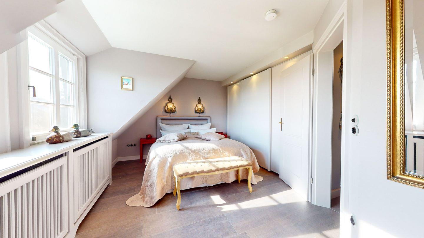 Auch der Spitzgiebel verfügt über ein gemütliches Schlafzimmer mit