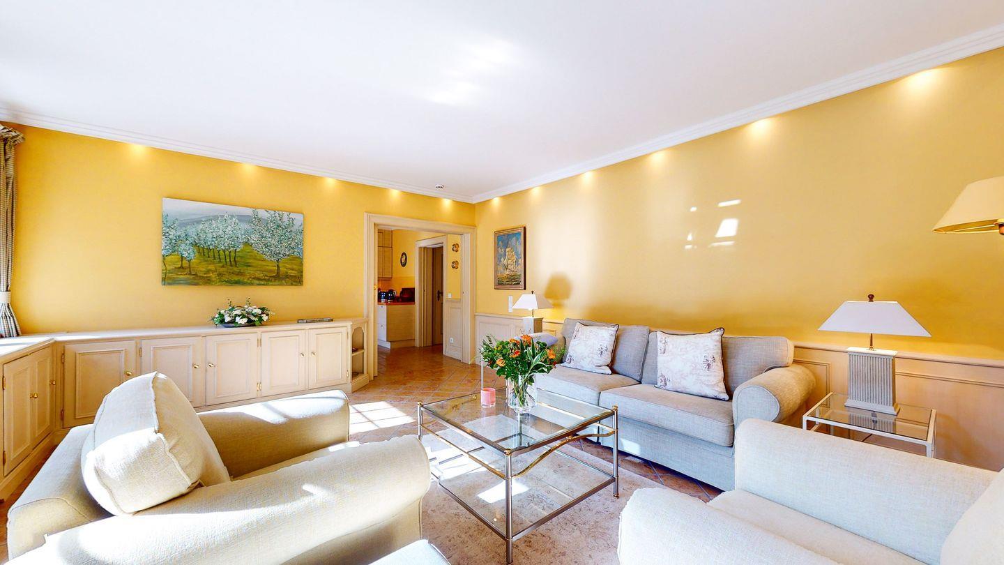 Der gemütliche Wohnbereich überzeugt mit einem