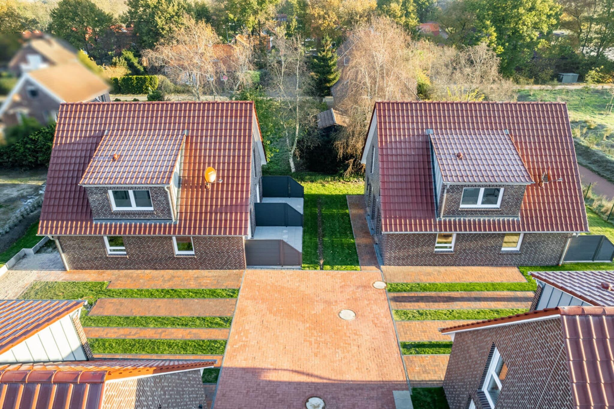 Modern und liebevoll eingerichtete Ferienwohnung Nitschke - FeWo Flut bietet die Möglichkeit, im Herzen Ostfrieslands Ihren Urlaub zu genießen. Die Ferienwohnung in einer unserer beiden in 2022 neu gebauten Doppelhäusern liegt direkt am idyllischen Badesee in Aurich-Tannenhausen. Jede Doppelhaushälfte verfügt über ~60 m² Wohnfläche und bietet Platz für bis zu vier Personen. Das offengestaltete Erdgeschoss mit Koch-/ Wohn- und Essbereich sowie die daran anschließende Terrasse laden zum Wohlfühlen ein. Im Obergeschoss befinden sich zwei gemütliche Schlafzimmer und ein großes Tageslichtbad mit begehbarer Dusche, Waschbecken und WC. Parkplatz für PKW ist direkt am Haus. Größere Familien dürfen gerne beide Doppelhaushälften zusammen reservieren.