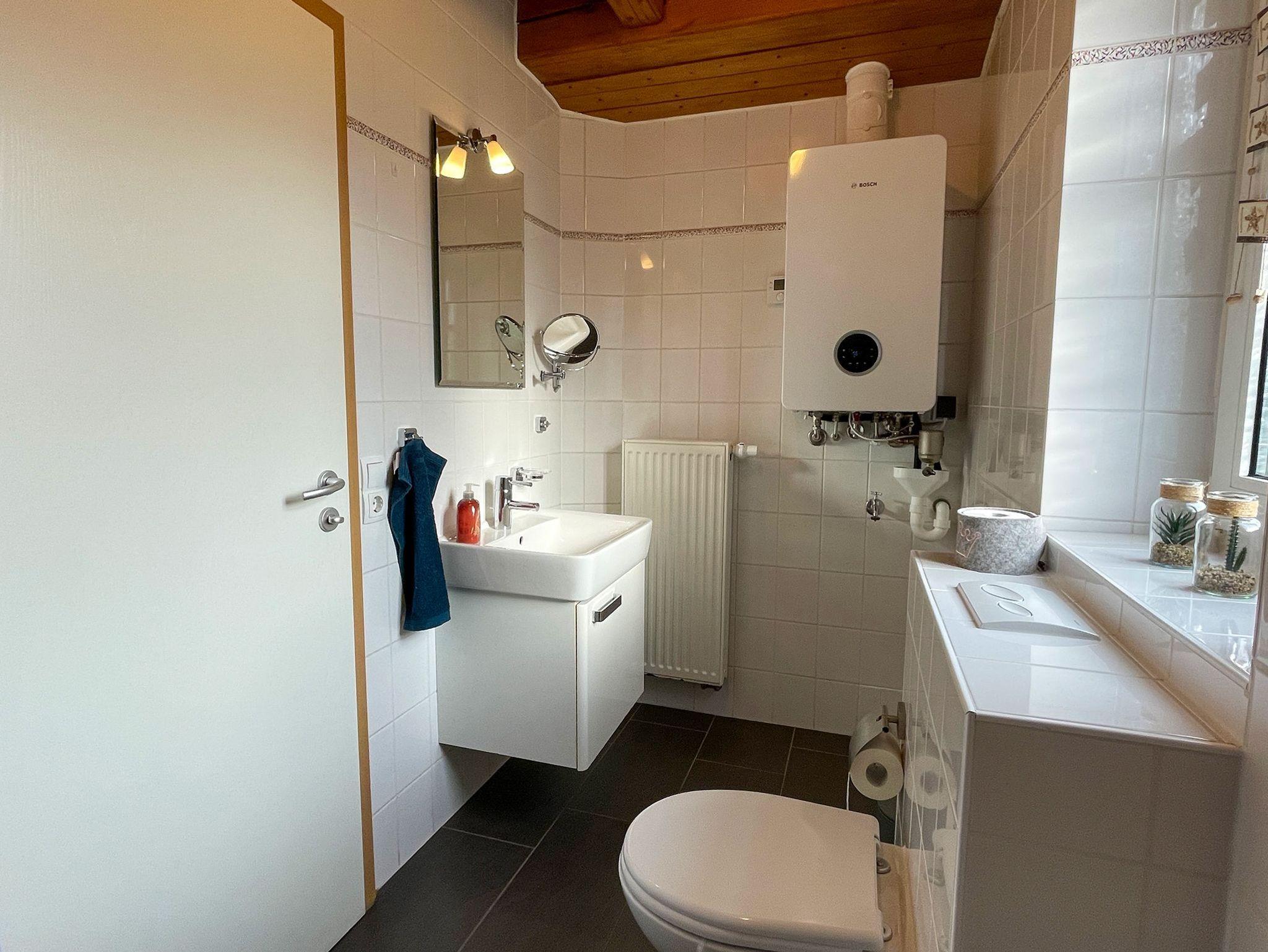 Im Erdgeschoss erwartet Sie ein modernes Badezimmer mit einer komfortablen, ebenerdigen Dusche ideal für einen entspannten Start in den Tag.