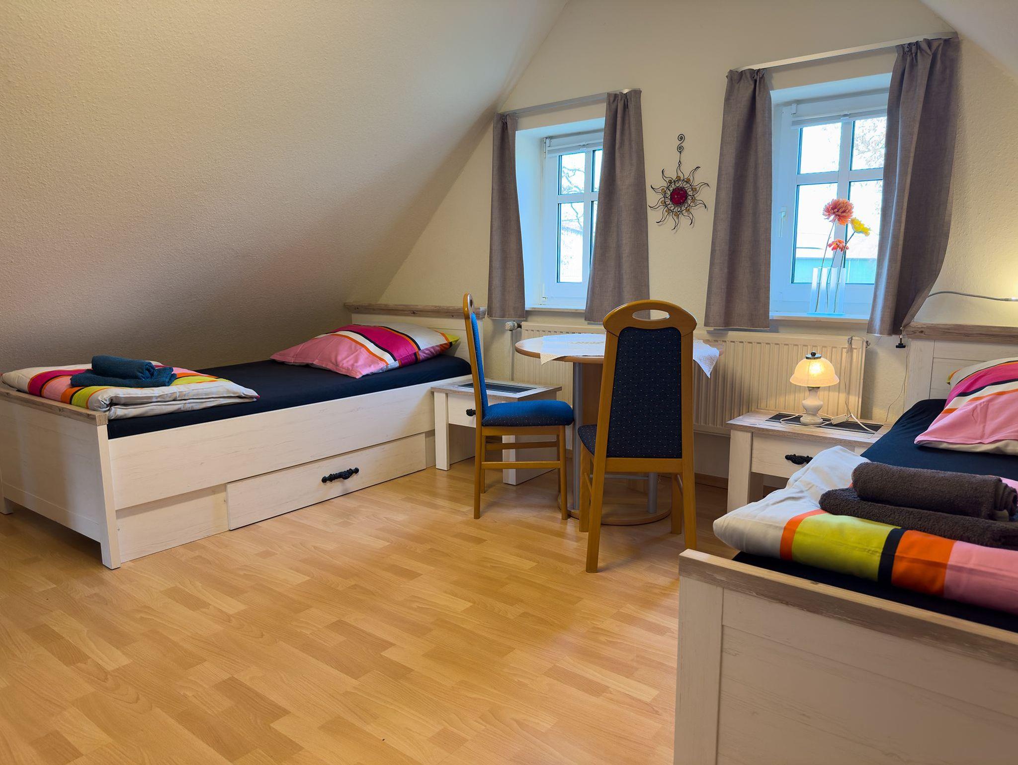 Im Obergeschoss finden Sie das großzügige Elternschlafzimmer sowie ein liebevoll gestaltetes Kinderzimmer, beide mit viel Ruhe und Gemütlichkeit für erholsame Nächte.