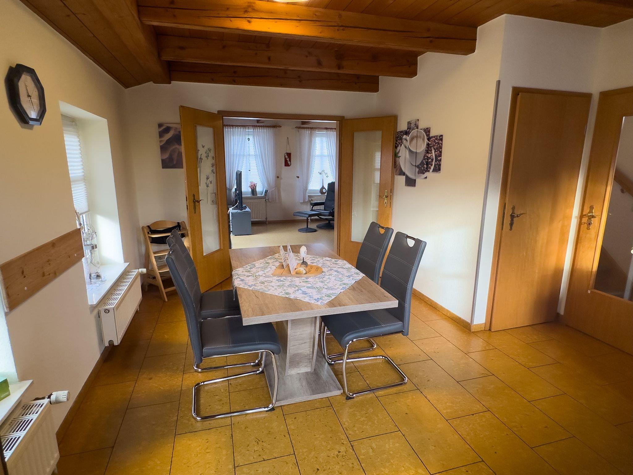 Direkt angrenzend lädt das behagliche Wohnzimmer zum Verweilen ein. Ob für einen Spieleabend, einen gemütlichen Fernsehabend oder einfach zum Ausruhen. Hier fühlt man sich sofort zuhause.