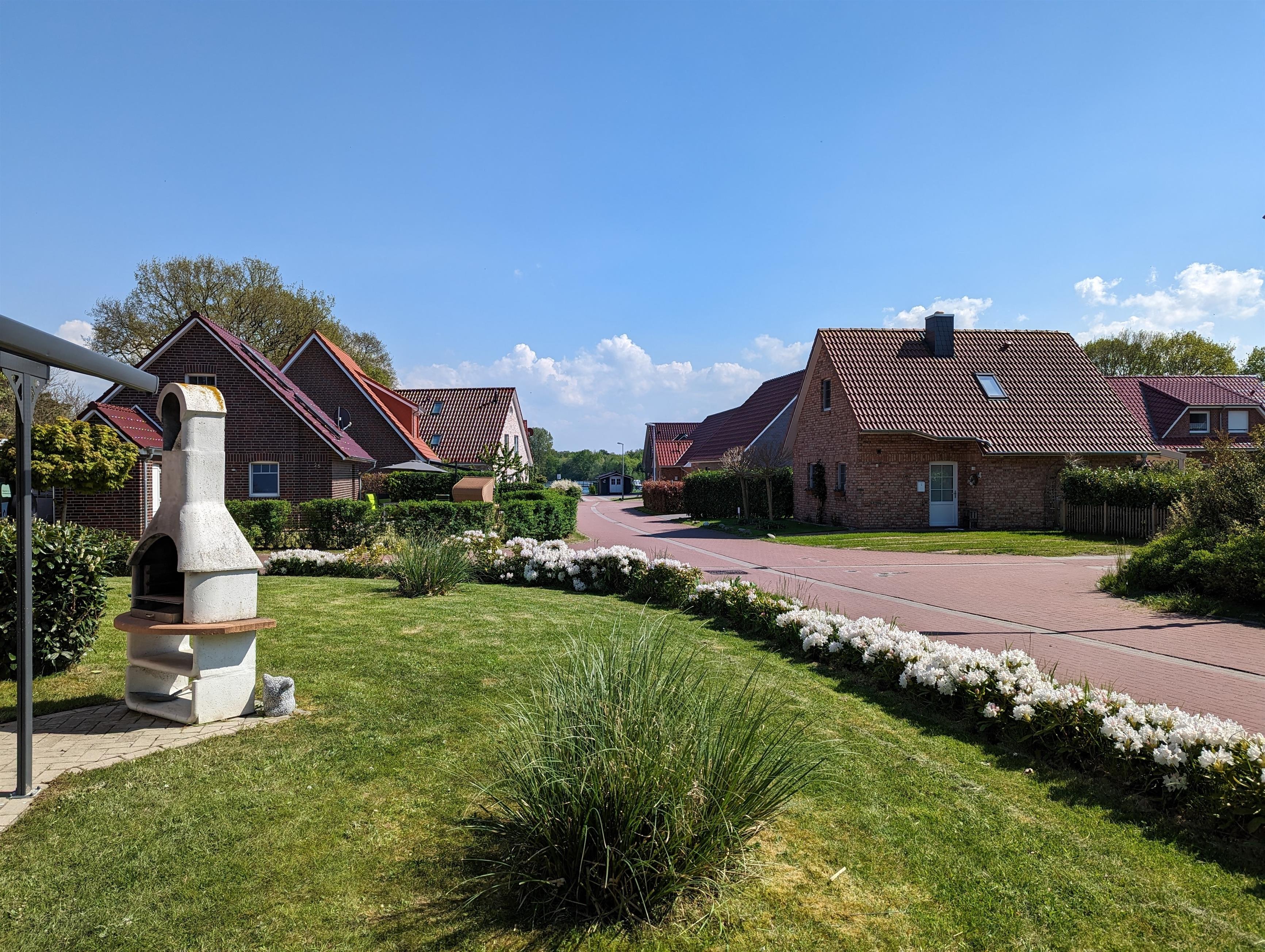 Modernes Ferienhaus in Aurich mit Seeblick, Kaminofen und Sauna für entspannte Urlaubstage.