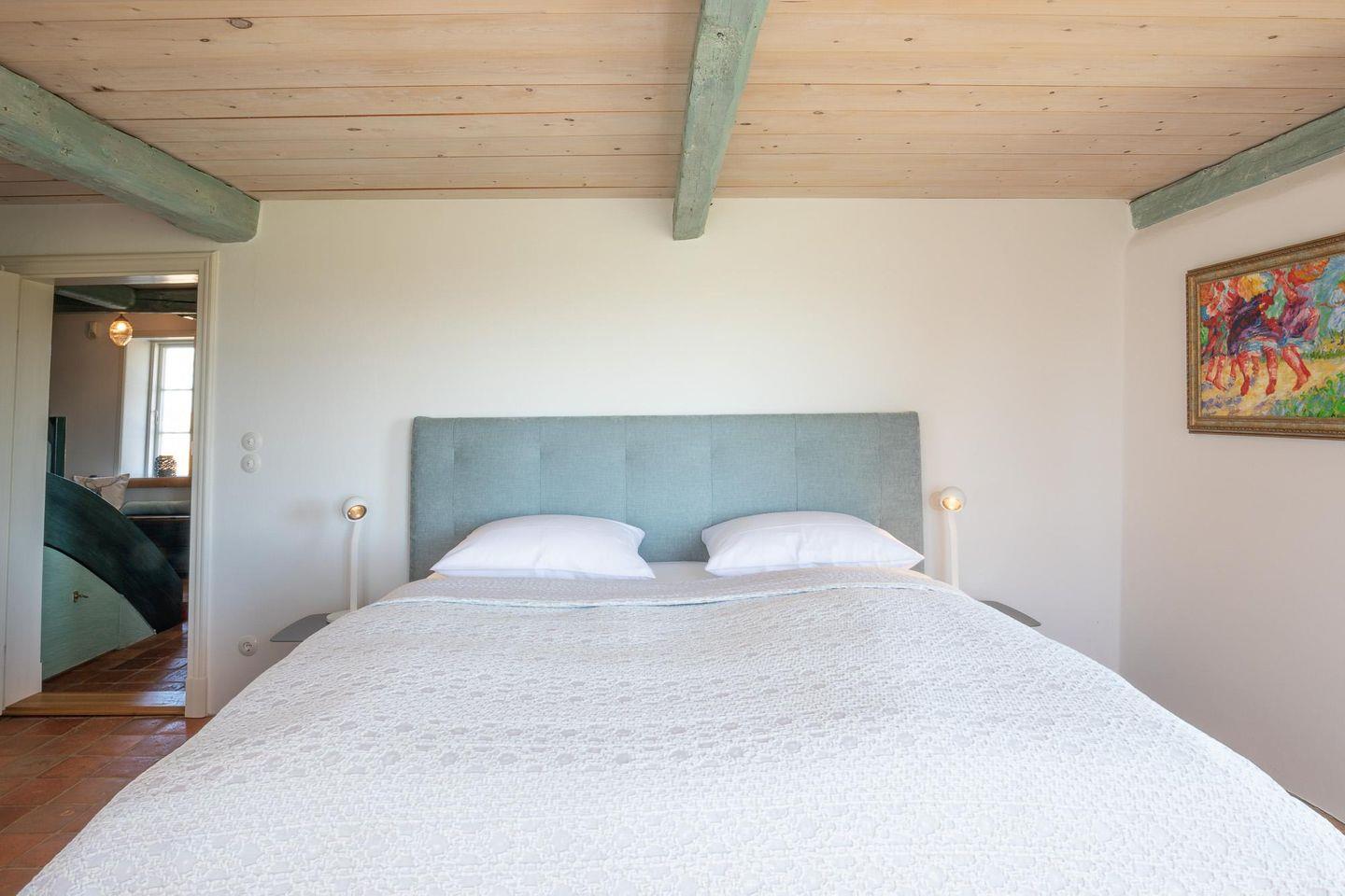 Das 150 qm große Reethüs Rosenkranz bietet Ihnen insgesamt 3 Schlafzimmer, davon zwei im Erdgeschoss: ein Schlafzimmer mit Doppelbett (180 x 200) und direktem Zugang zu einer Terrasse und zum schönen Badezimmer mit Badewanne und ebenerdiger Dusche. Das weitere Schlafzimmer verfügt über ein Doppelbett (160 x 200). Alle Schlafzimmer sind mit besonderen Matratzen für Ihren erholsamen Schlaf ausgestattet. Ihre Betten sind bei Anreise selbstverständlich bezogen.