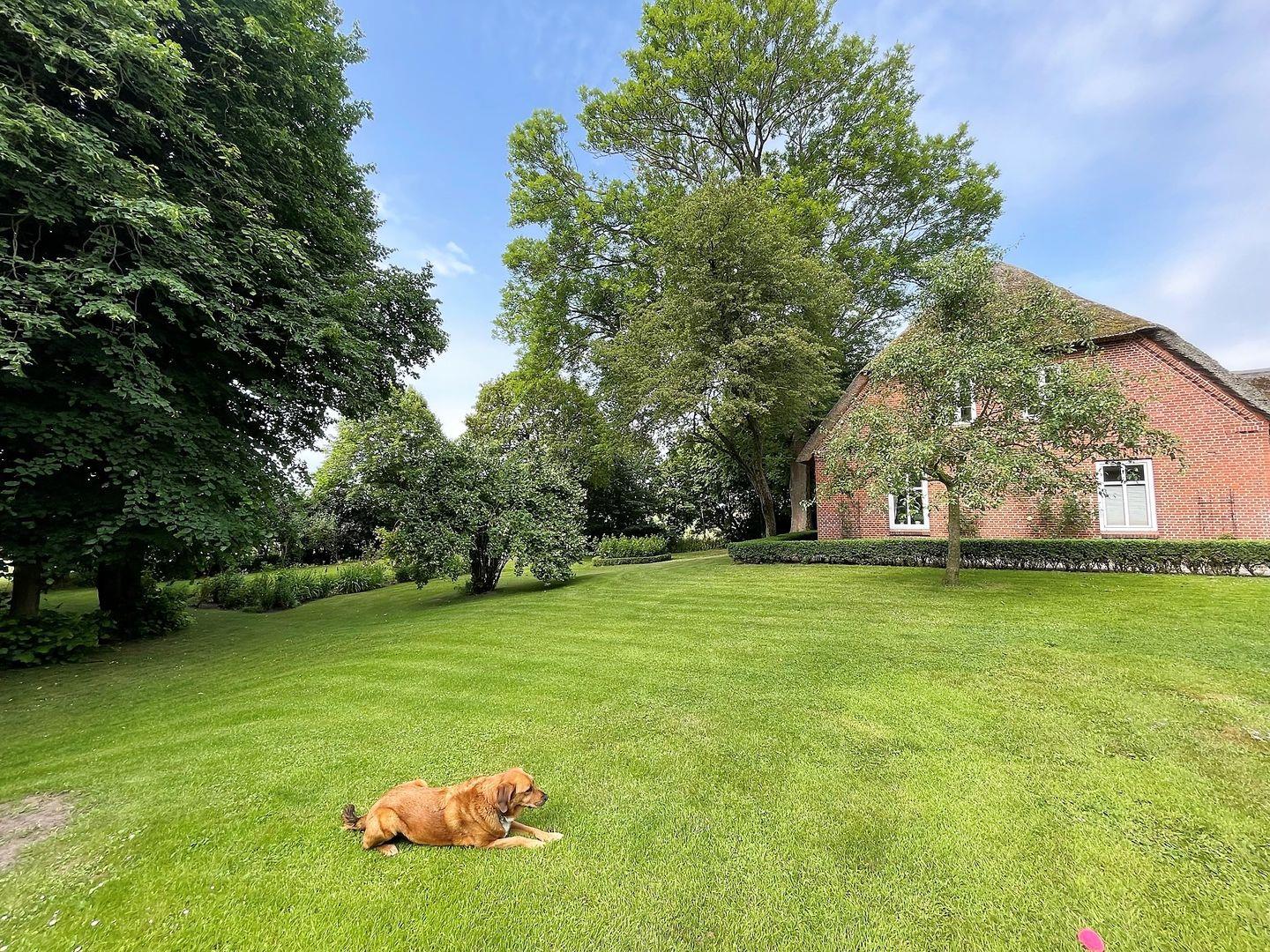 Besonders hervorzuheben ist der Garten mit Liegewiese und Teich, der zum Verweilen und Entspannen alle Gästen aus allen 4 Wohnungen einlädt. Genießen Sie die frische Luft auf der Terrasse mit Gartenmöbeln, während Sie einen Blick auf die Umgebung werfen. Haustiere sind in der Wohnung herzlich willkommen, sodass Sie Ihren vierbeinigen Freund mitbringen können, um gemeinsam die Natur zu erkunden. Darüber hinaus stehen Parkplätze zur Verfügung, und die Notwendigkeit eines Autos wird empfohlen, um die Schönheit der Umgebung in vollen Zügen genießen zu können.