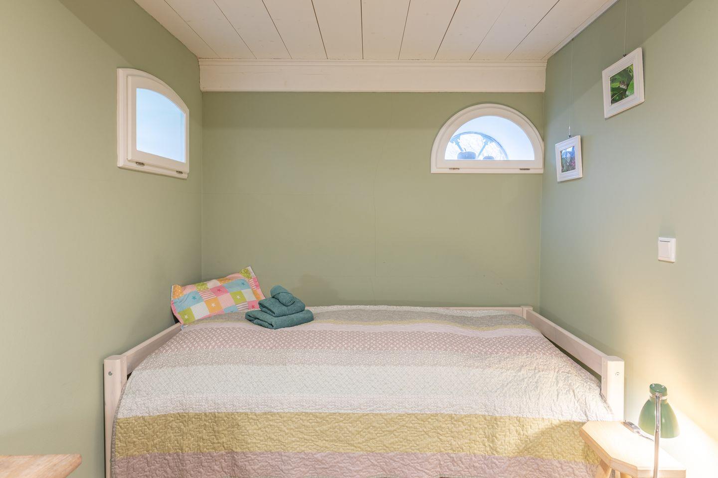 Das Ferienhaus verfügt über drei gemütliche Schlafzimmer, die eine klare und wohnliche Gestaltung zeigen. Zwei der Zimmer sind mit großen Doppelbetten (180 x 200) ausgestattet. Die ruhigen Wandfarben, das sichtbare Gebälk und die Massivholzmöbel schaffen eine behagliche Atmosphäre. Das dritte Schlafzimmer bietet zwei Einzelbetten (90 x 190). Der Raum wirkt durch die helle Gestaltung freundlich und eignet sich gut für Kinder oder mitreisende Freunde. Ein altes Kinderpult ergänzt die Ausstattung. Alle Schlafzimmer bieten ausreichend Stauraum und laden zu erholsamen Nächten ein.