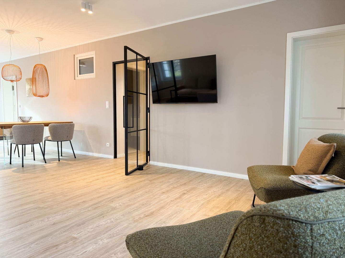 Auch wenn das Haus viel Ruhe ausstrahlt, gibt es genug Möglichkeiten, aktiv zu sein. Ein Spielzimmer, Billard, Kicker und Tischtennis sorgen für Abwechslung, dazu kommt ein kleiner Fitnessbereich. Wenn es etwas ruhiger sein darf, findest du im separaten Ruheraum deinen Platz zum Durchatmen. WLAN ist natürlich vorhanden – schnell genug, falls doch mal Arbeit oder Streaming ansteht.
