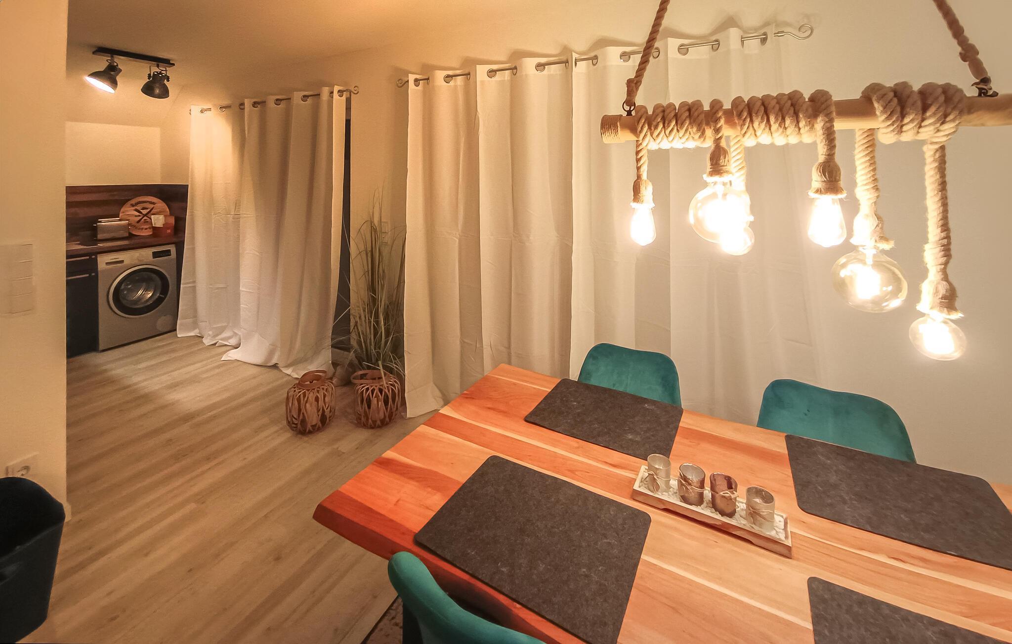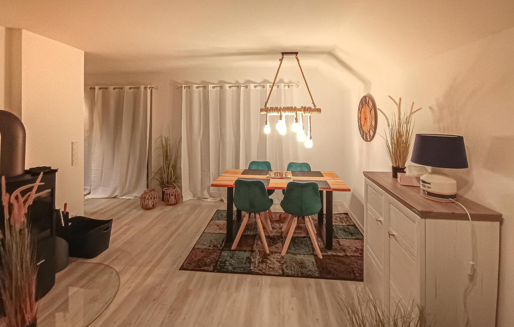 Willkommen in Ihrem modernen Apartment im ersten Obergeschoss, das mit allem eingerichtet ist, was Sie für einen gelungenen Urlaub brauchen. Im Wohnraum befindet sich eine hochwertige Sofaecke mit Sessel, um auf dem Flachbildschirm TV etwas zu schauen oder bei Kaminfeuer ein gutes Buch zu lesen. Die Küche ist reichlich ausgestattet und lässt keine Wünsche offen. Die ganze Wohnung ist modern eingerichtet, sodass Sie sich hier besonders wohlfühlen werden.