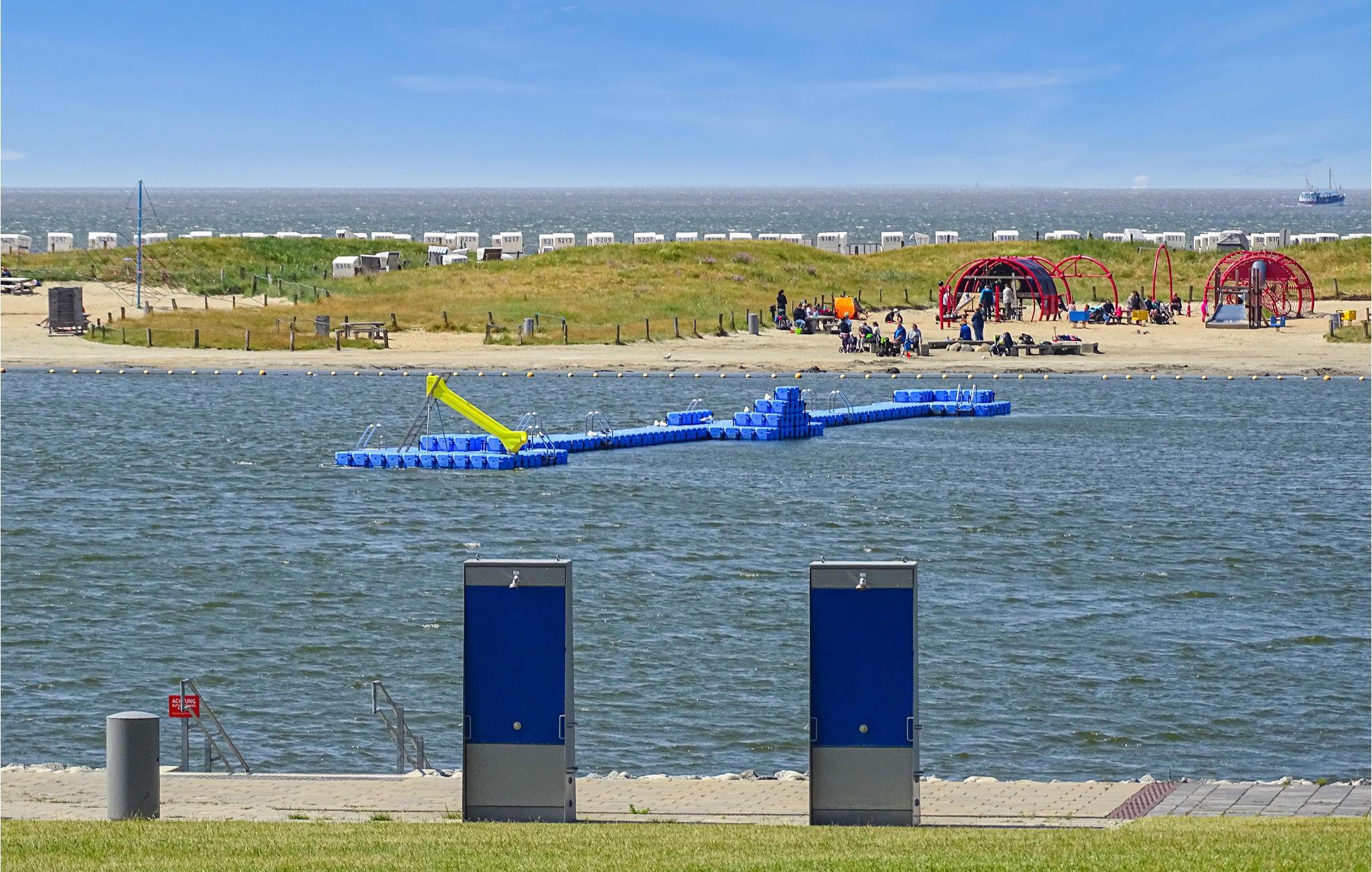 Außerdem geht es von dort über die Treppe ins Obergeschoss mit zwei weiteren Schlafzimmern und Badezimmer mit Wanne. Das ganze Haus ist modern und maritim eingerichtet, sodass Sie sich hier besonders wohlfühlen werden.