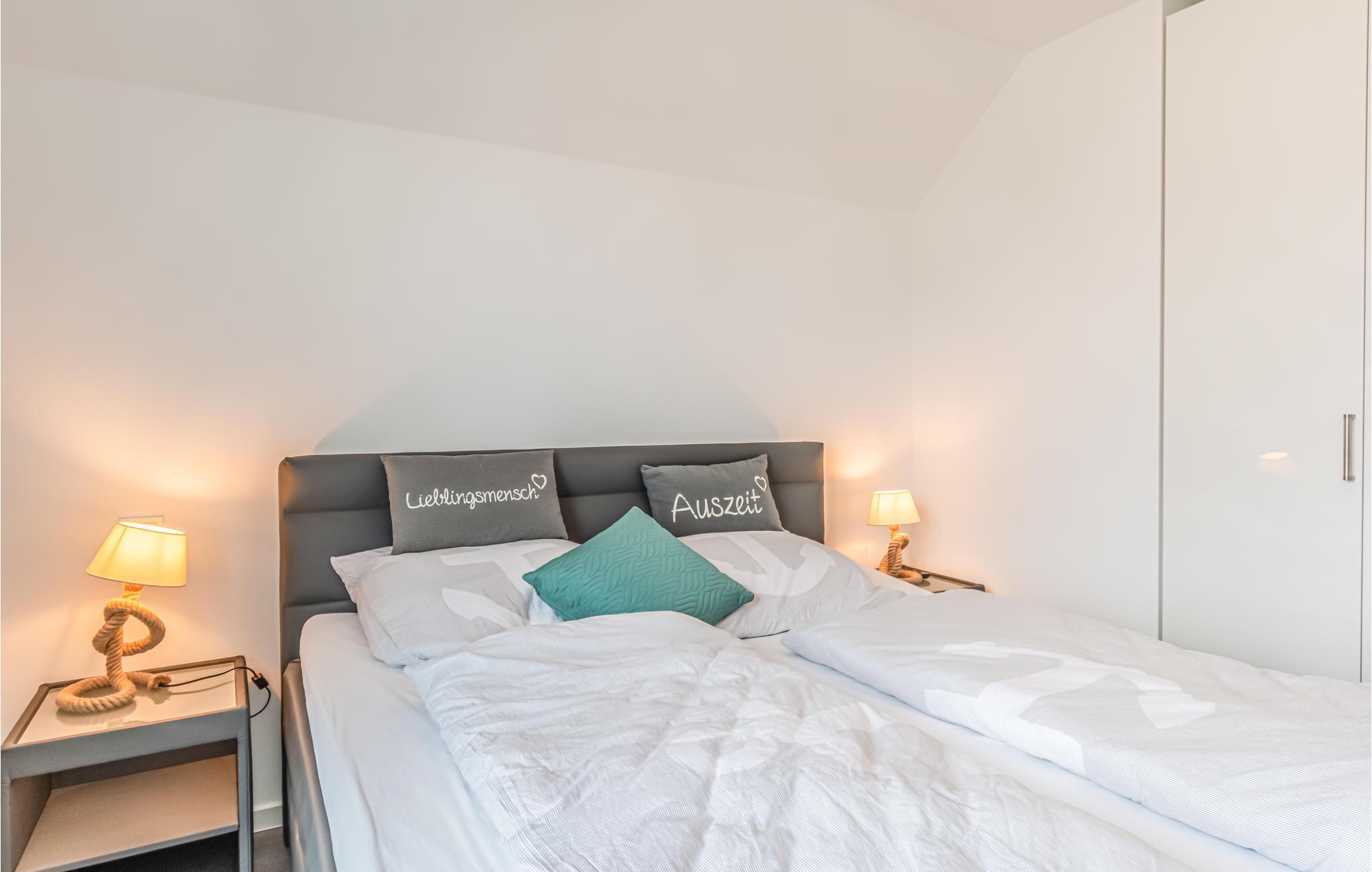 Willkommen in der Seehundsuite im ersten OG, die mit zwei Schlafzimmern, einem Badezimmer sowie einem modern und gemütlich eingerichteten Wohnraum mit offener Küche und Essbereich. Hier befindet sich zudem eine hochwertige Sofaecke mit Sessel, um auf dem Smart TV etwas zu schauen oder bei Kaminfeuer ein gutes Buch zu lesen. Die Küche lässt keine Wünsche offen und ist unter anderem mit Gefrierfach, Geschirrspülmaschine, Mikrowelle und Backofen ausgestattet. Die ganze Wohnung ist modern und maritim eingerichtet, sodass Sie sich hier besonders wohlfühlen werden. Auf dem großzügigen Balkon mit Gartenmöbeln und Grill können Sie viele Stunden in der Sonne und an der frischen Luft verbringen. Auf der überdachten kleinen Portalterrasse vor der Haustür lädt eine gemütliche Bank zum Verweilen ein. Im Bad gibt es neben einer bodengleichen Dusche eine Infrarot-Sauna zum wunderbaren Entspannen. Für heiße Tage gibt es zusätzlich zwei Tischventilatoren. Familien mit kleinen Kindern finden kindersichere Steckdosen sowie ein Reisebett und Hochstuhl mit Kindergeschirr vor. Ihre mitgebrachten Fahrräder können Sie in einem zur Wohnung gehörendem Fahrradschuppen einschließen .