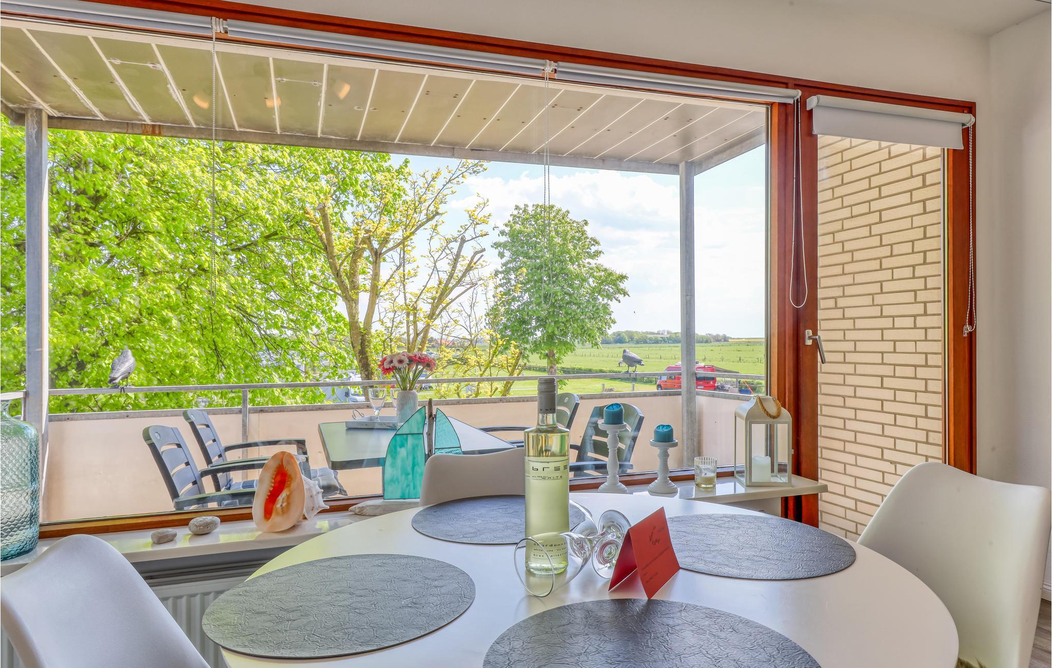 Moderne, ruhige Ferienwohnung nahe Büsum mit schönem Landschaftsblick, Balkon und kostenfreiem Strandkorb im Sommer.
