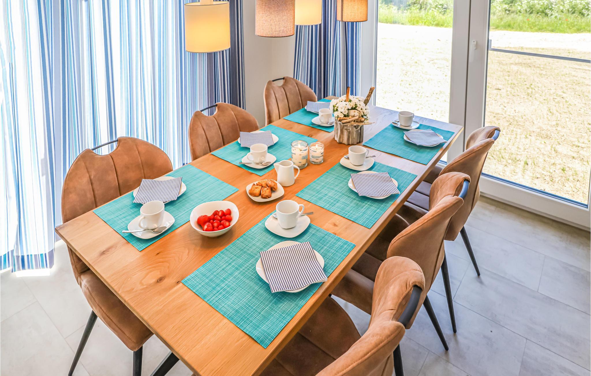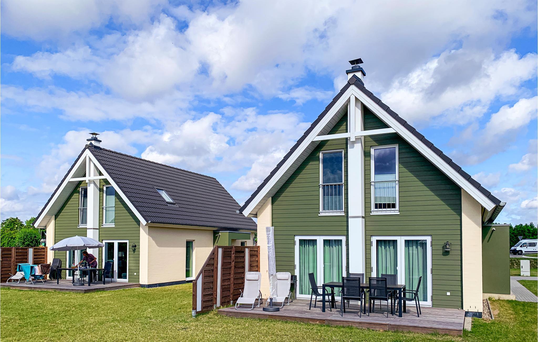 Sie betreten Ihr 2020 gebautes Haus "Meerzeit" über das Eingangsportal und treten in den kleinen Flur, vom dem Sie in das Schlafzimmer im Erdgeschoss, das Duschbad mit Sauna, den HWR sowie das modern gemütlich eingerichtetem Wohnraum mit offener Küche und Essbereich gelangen. Hier befindet sich auch das hochwertige Schlafsofa. Die Küche lässt keine Wünsche offen und ist unter anderem mit Gefrierfach, Geschirrspülmaschine, Wasserkocher und Mixer ausgestattet.
