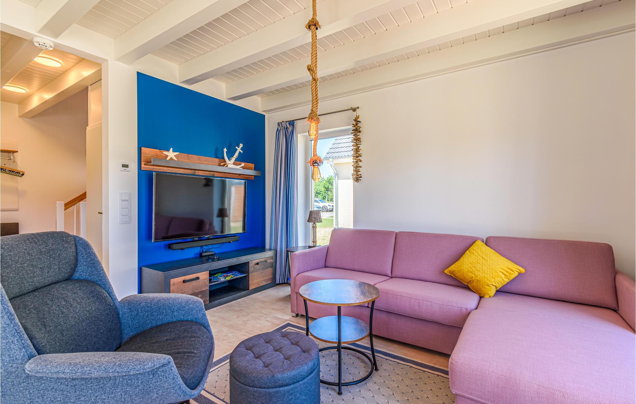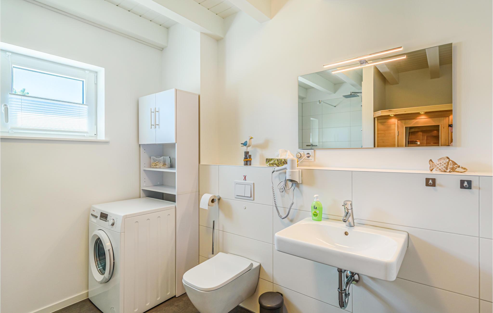 Außerdem geht es von dort über die Treppe ins OG mit zwei weiteren Schlafzimmern und Badezimmer mit Wanne. Das ganze Haus ist modern und maritim eingerichtet, sodass Sie sich hier besonders wohlfühlen werden. In der Infrarot-Sauna können Sie sich wunderbar entspannen.