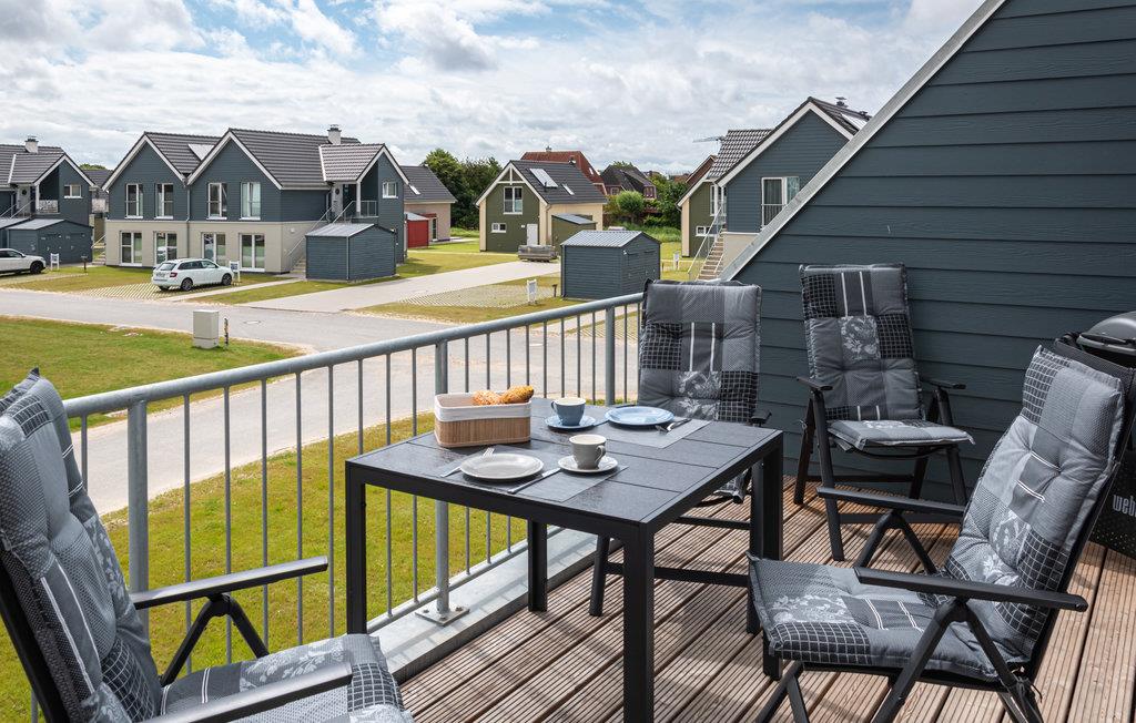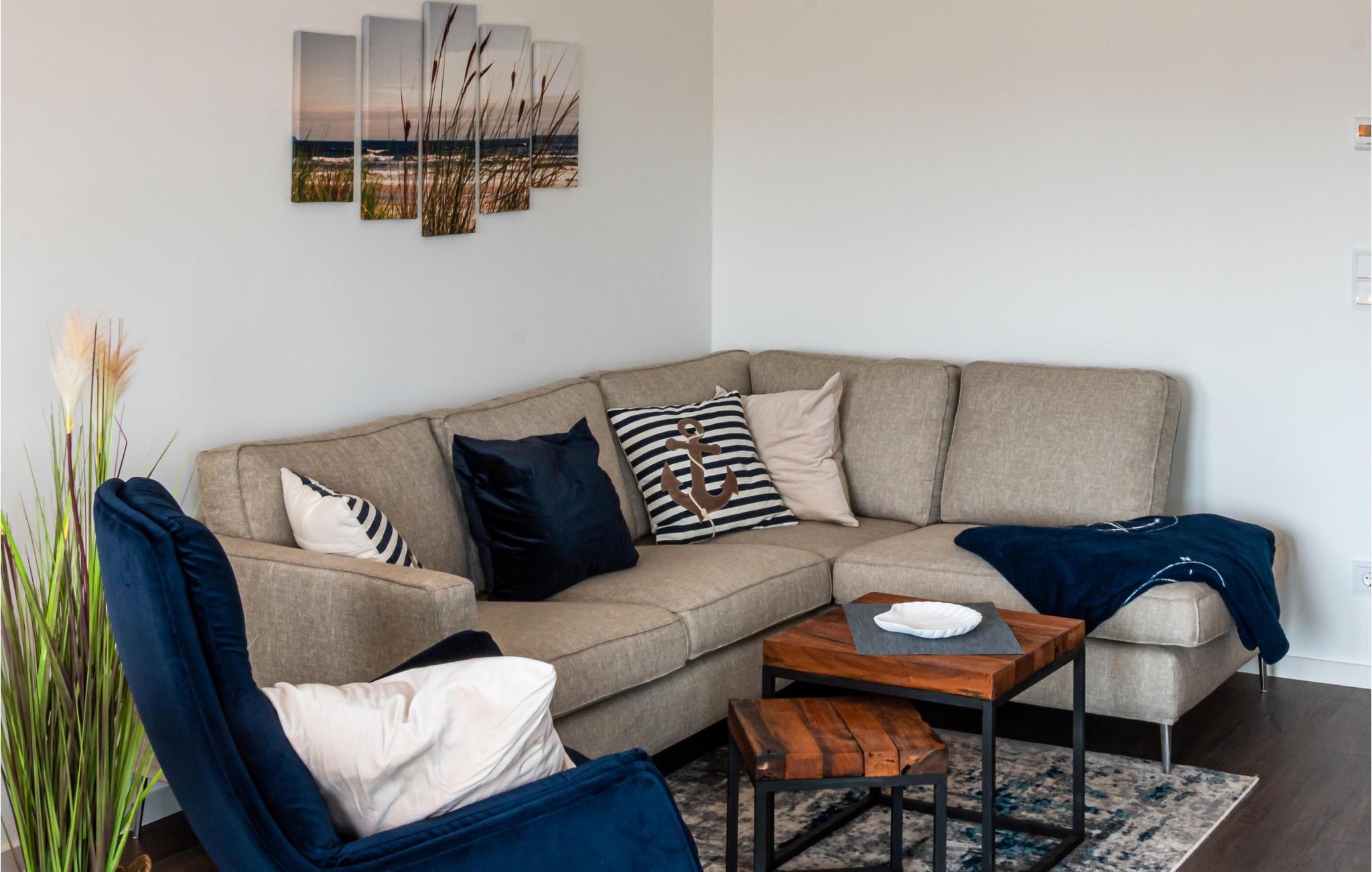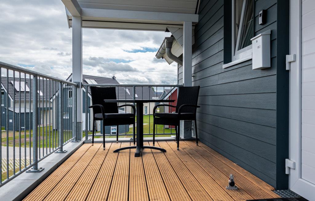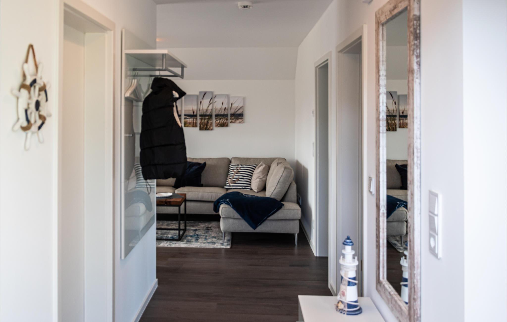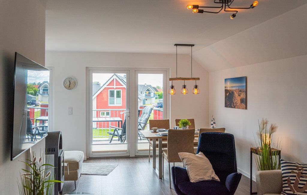 Moderne Ferienwohnung in Büsum mit Balkon, Kaminofen und Sauna, ideal für entspannte Urlaubstage an der Nordsee.