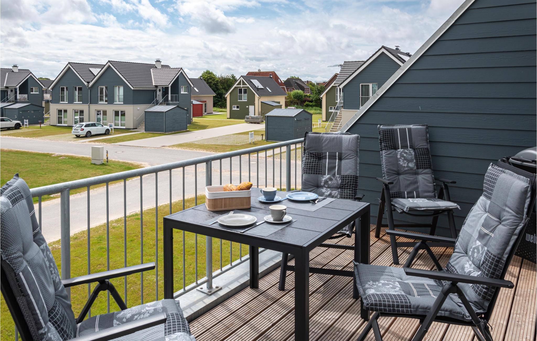 Moderne Ferienwohnung mit Balkon und voll ausgestatteter Küche nahe dem Nordseedeich in Büsum.