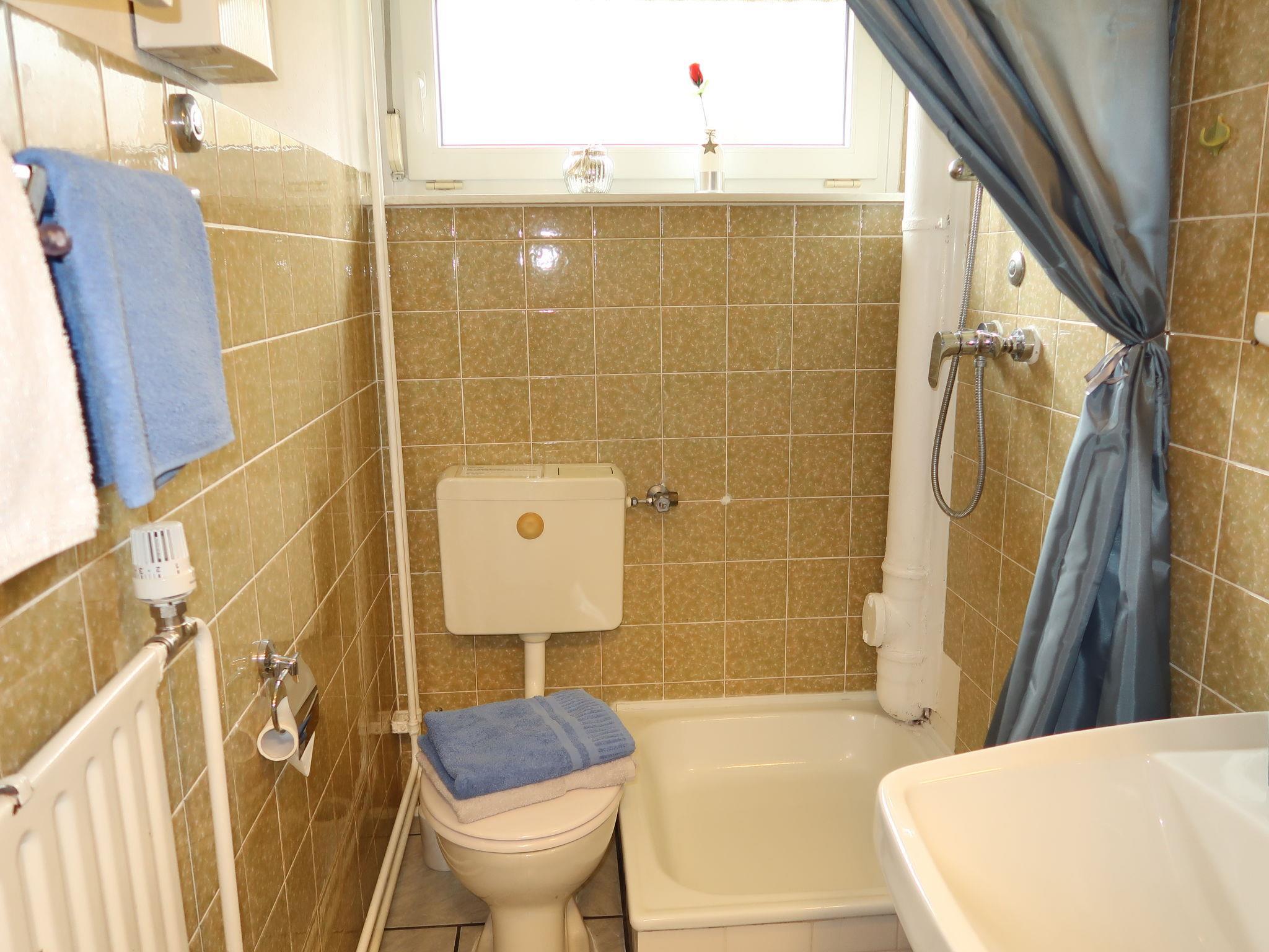 1-Zimmer-Wohnung 23 m2, im Erdgeschoss. Zweckmässig eingerichtet: Wohn-/Schlafzimmer mit 1 franz. Bett (140 cm, Länge 200 cm), Esstisch und Sat-TV (Flachbildschirm), Radio und DVD. Ausgang zum Garten, zur Terrasse. Kochnische im Eingang (2 Glaskeramikplatten, Mikrowelle, elektrische Kaffeemaschine). Dusche/WC. Kleine Terrasse 10 m2. Terrassenmöbel. Bitte beachten: Nichtraucher-Unterkunft. Rauchmelder.