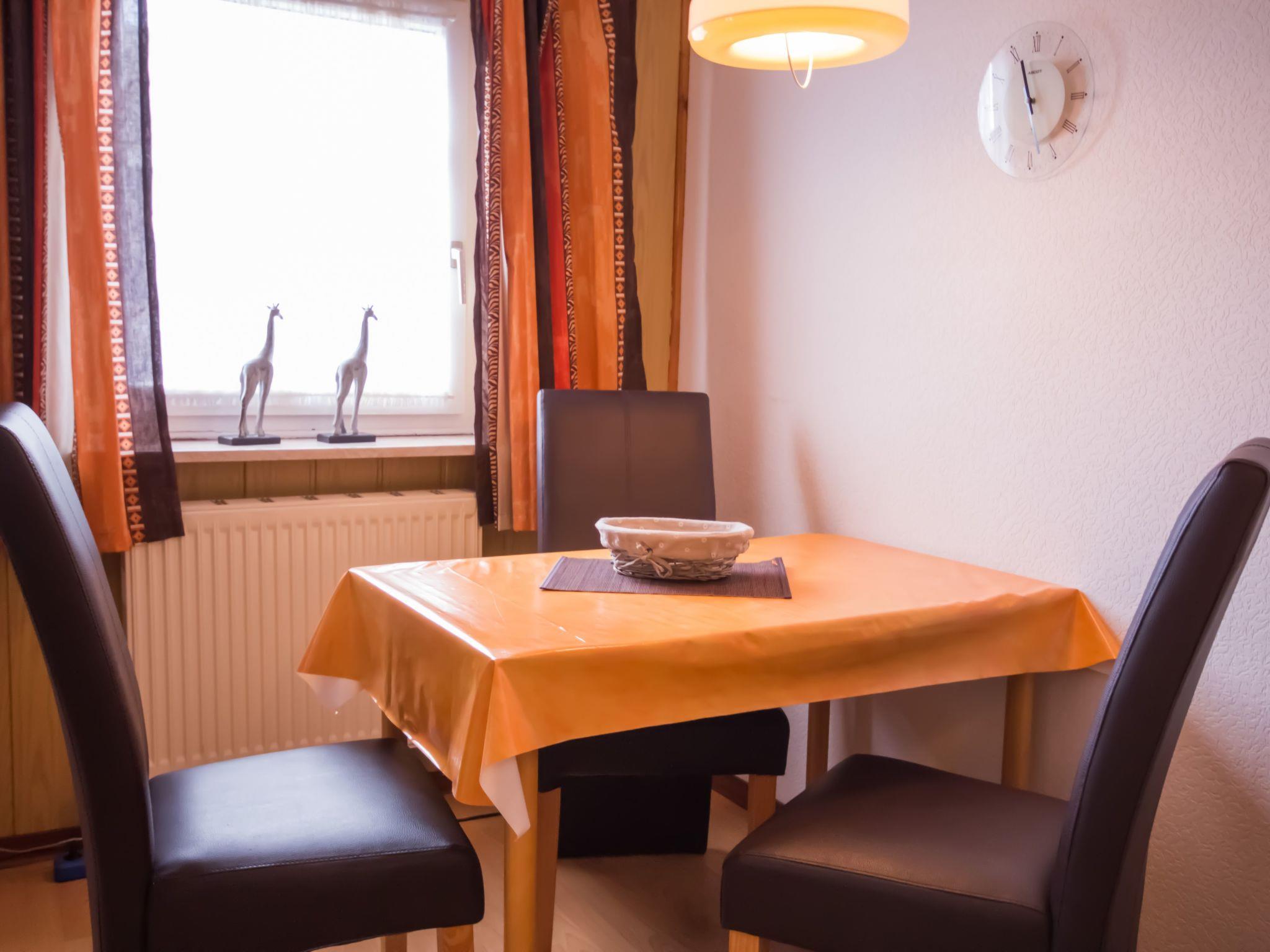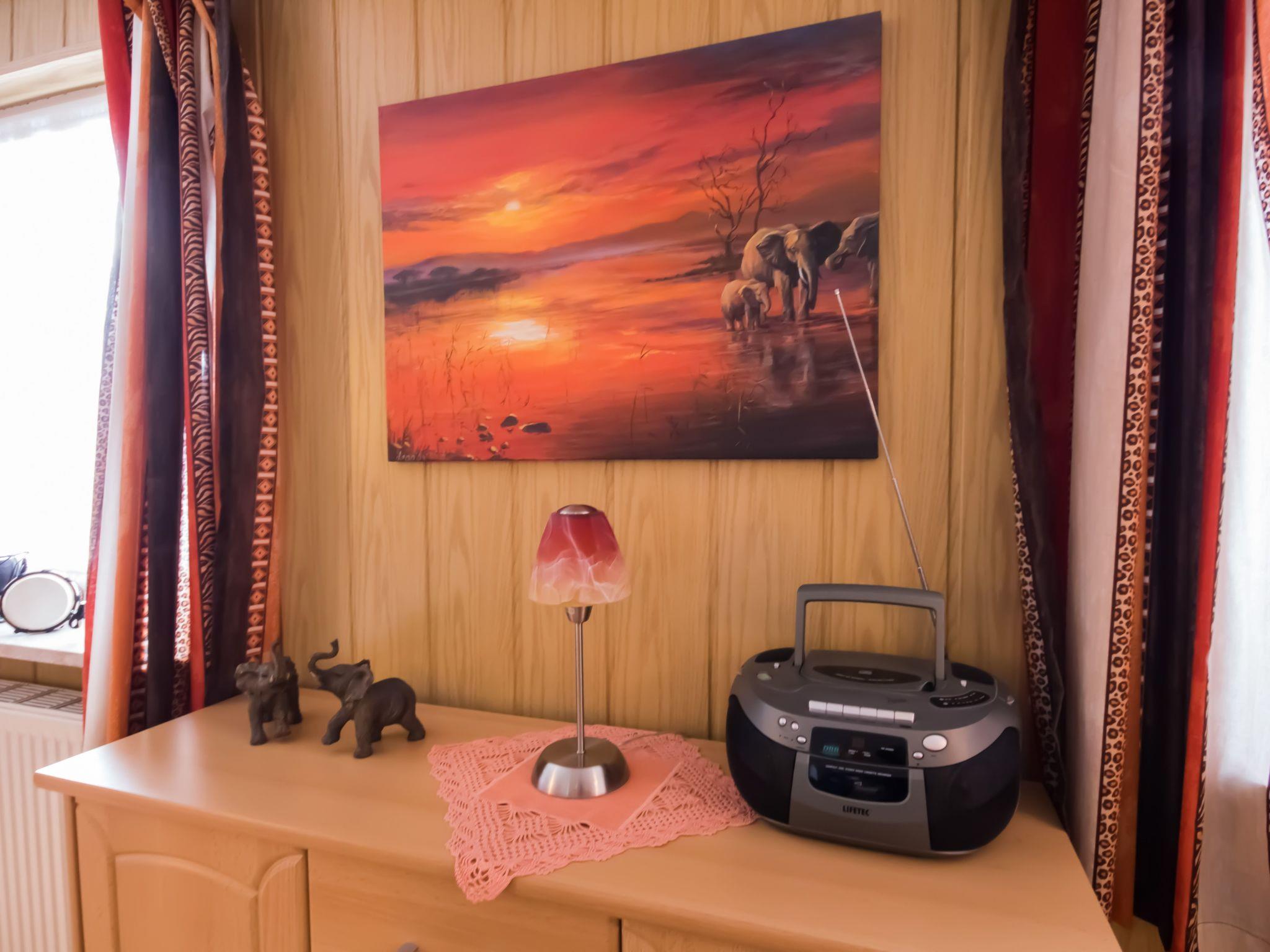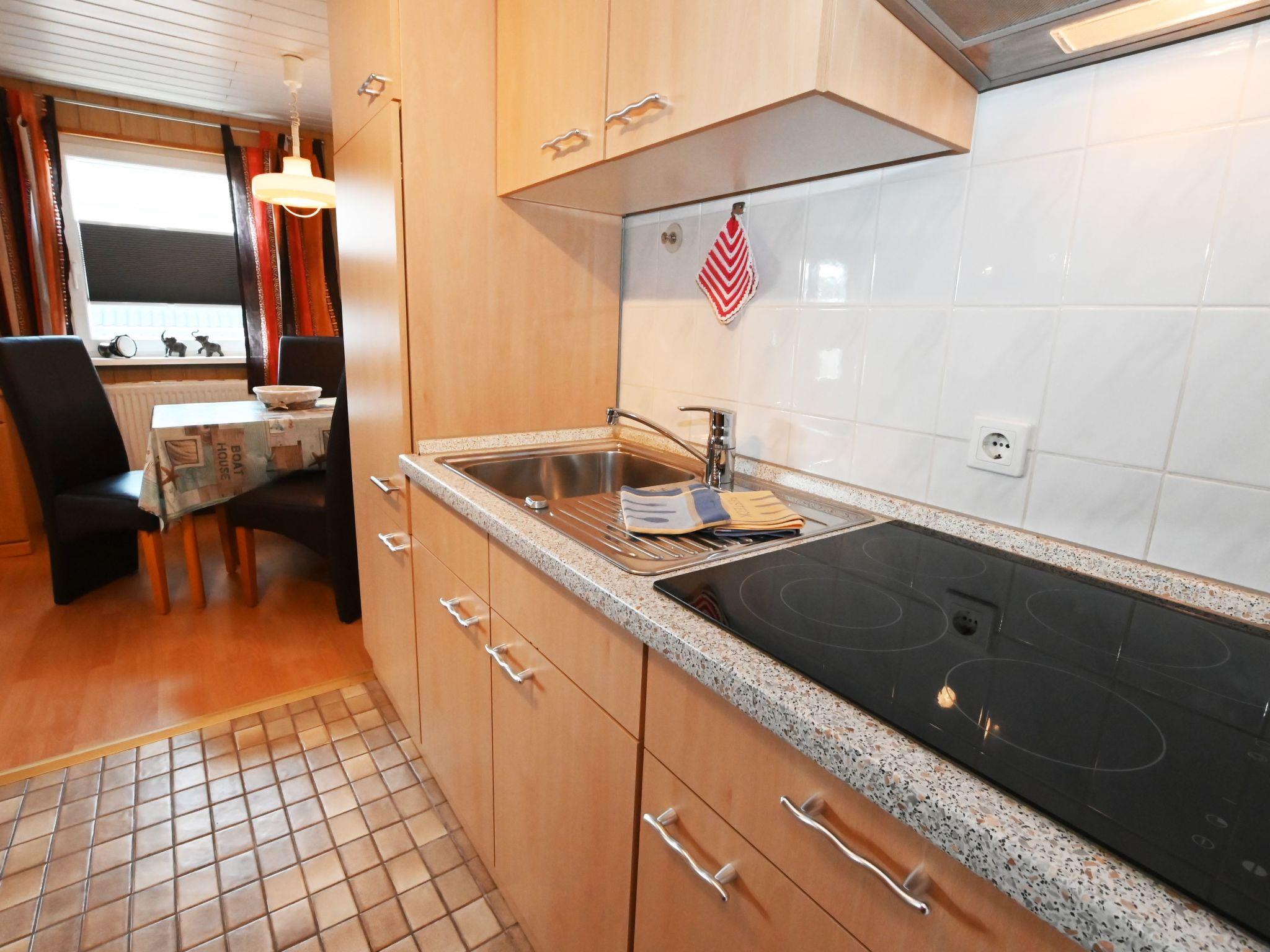 Die Ferienwohnung verfügt in der Wohnessküche über einen 4-Ceranfeldtouchplattenherd, Kühlschrank mit Gefrierfach, Mikrowelle mit Umluftbackofen für Pizza, Wasserkocher, Kaffeemaschine, Toaster, Mixer, Eierkocher, Koch- und Essgeschirr. Esstisch mit drei Stühlen. Eckcouch mit Tisch, Stehlampe, 80er Flachbildfernseher mit Digital Sat TV und DvD Kofferradio mit CD TV Rolltisch und eine Anrichte. Im Schlafraum befindet sich ein Doppelbett 1,80m breit mit verstellbare Lattenroste ein Kleiderschrank und zwei Nachtische mit Touchlampen sowie ein Hocker.Bad mit Dusche und Duschkabine, WC,Waschbecken, Hocker, Rollregal,Fön und Spiegelschrank mit Unterschrank Flur: Gaderobe, Spiegel und Schuhregal Der Flur und das Bad sind mit Fliesen und der Wohnraum, Schlafraum ist mit Laminat ausgelegt.Teilrenovierung 2015 Wir haben für Sie Kostenfreies W-Lan für Ausfälle und Störungen übernehmen wir keine Haftung.